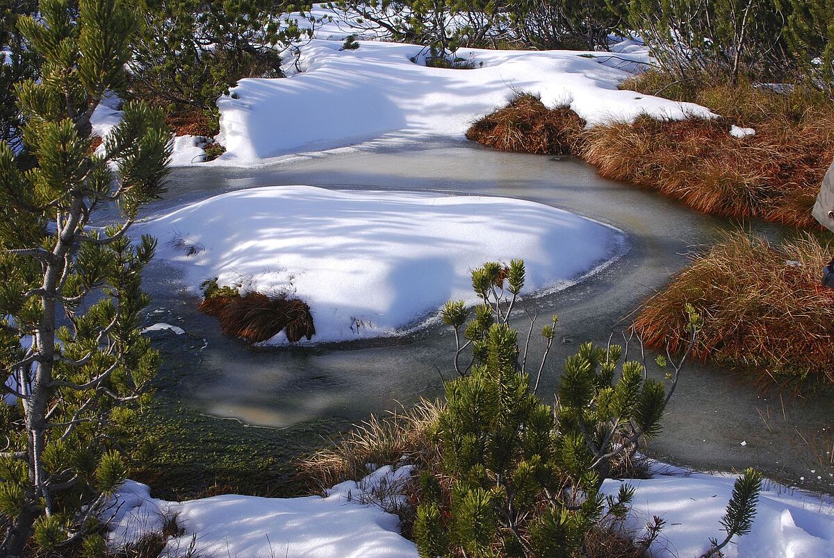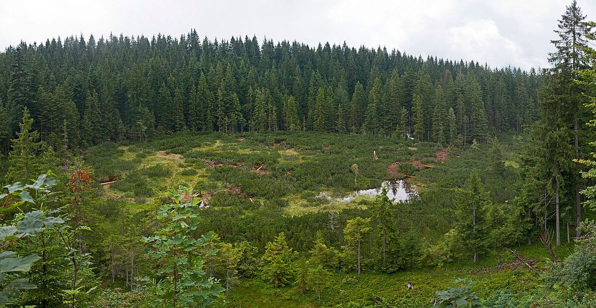 Lärchendamm zur Renaturierung eines Hochmoores im Inneren Salzkammergut