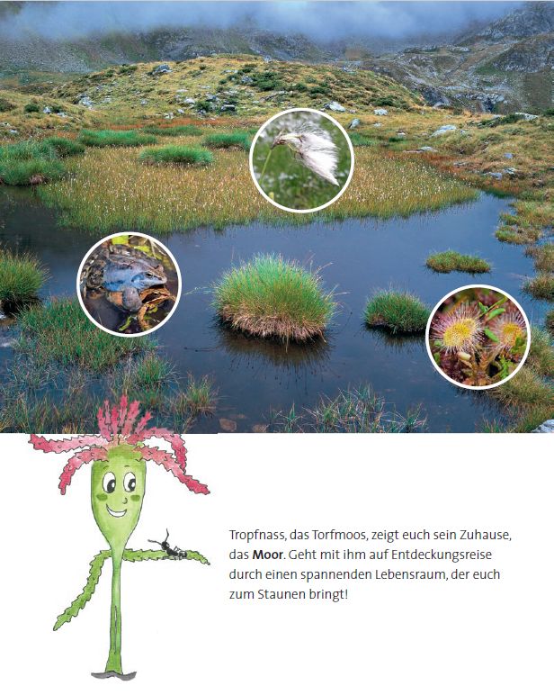 Auszug aus dem Kinder-Kreativheft "Abenteuer Moor" mit dem Torfmoos "Tropfnass"