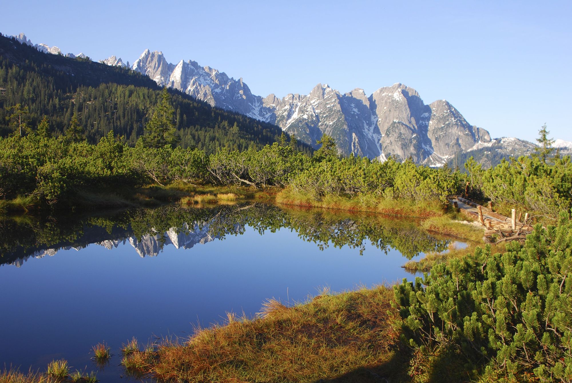 Blick über eine Hochmoorlandschaft im Inneren Salzkammergut