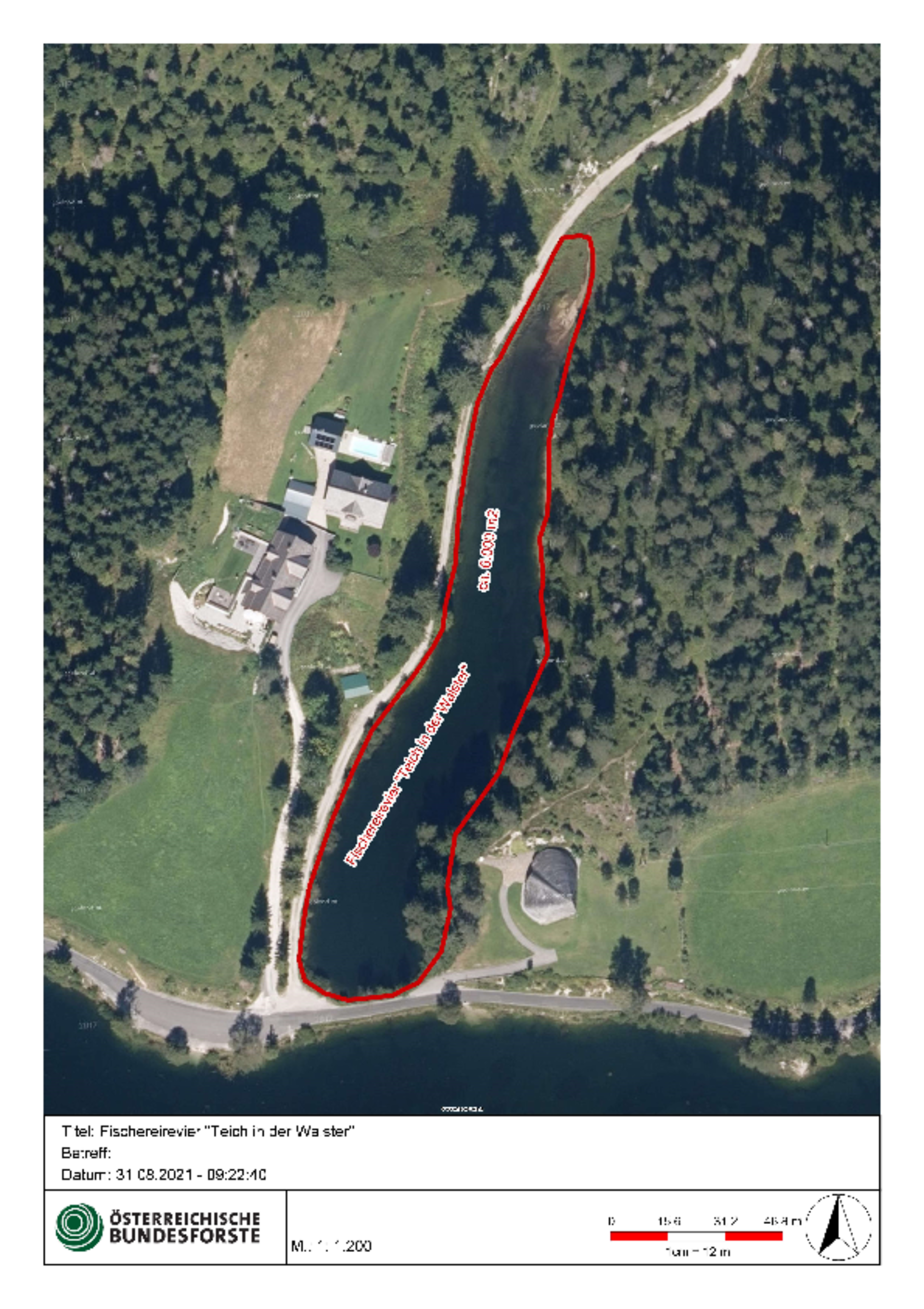 | Besonderheiten | Zur Vergabe gelangt der etwa 6.000 m² große Teich in der Walster. Er grenzt an den Hubertussee und liegt an den Ausläufern des Schnittlermoos'. Inmitten der idyllischen Landschaft haben Sie die einmalige Gelegenheit Ihrer Fischerei-Leidenschaft nachzukommen oder einfach nur die einzigartige Fauna und Flora in der Walster exklusiv zu genießen. In diesem sensiblen Ökosystem steht die Naturnähe an oberster Stelle, daher kommen als Besatzfische ausschließlich Äschen und Bachforellen, nach Abstimmung mit der ÖBf AG, in Frage. Der angrenzende Hubertussee ist schon seit über 20 Jahren ohne Besatz und weist ebenfalls einen sehr guten natürlichen Fischbestand auf. |