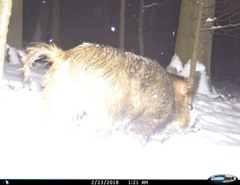Hier ist ein Wildkamera-Foto von einem Wildschwein gelungen!