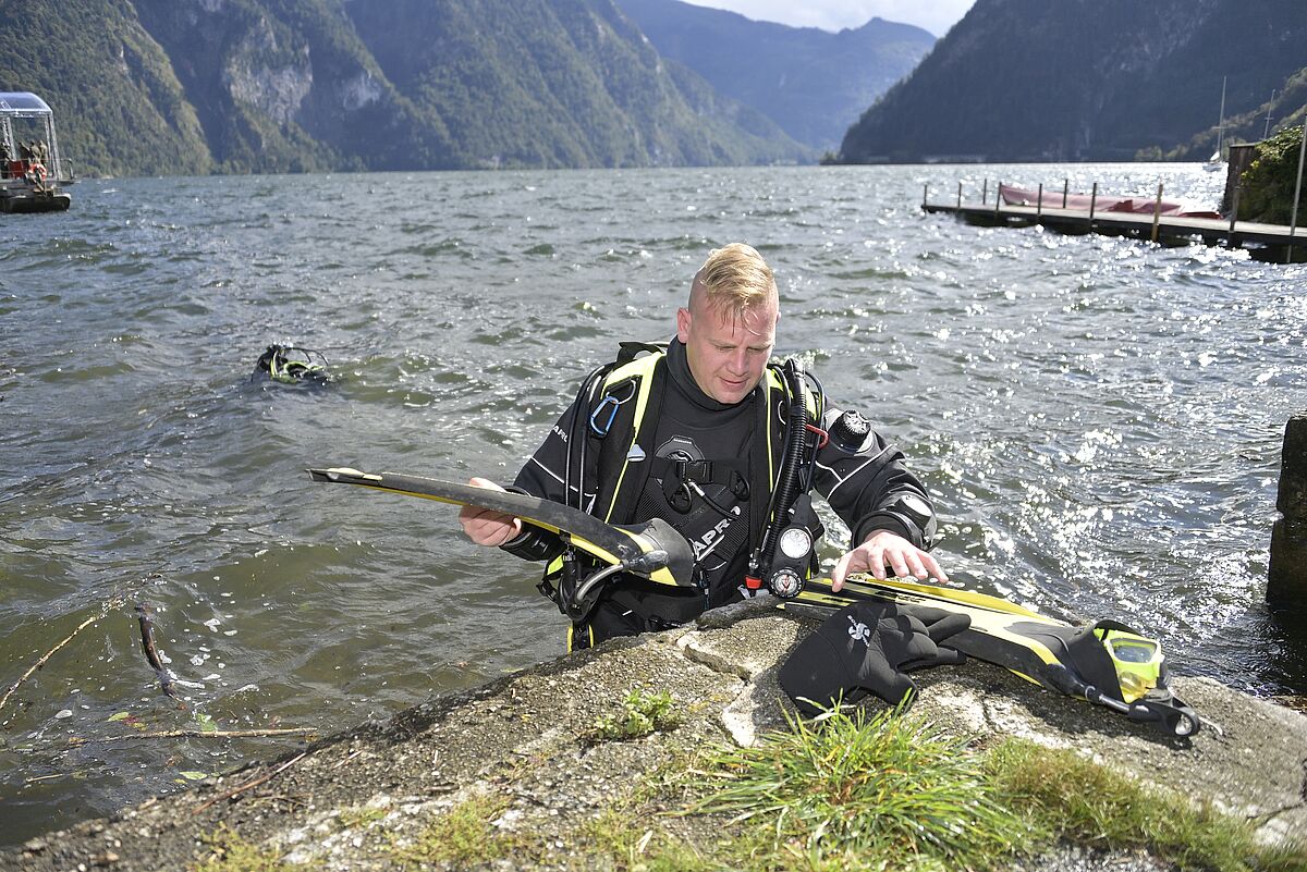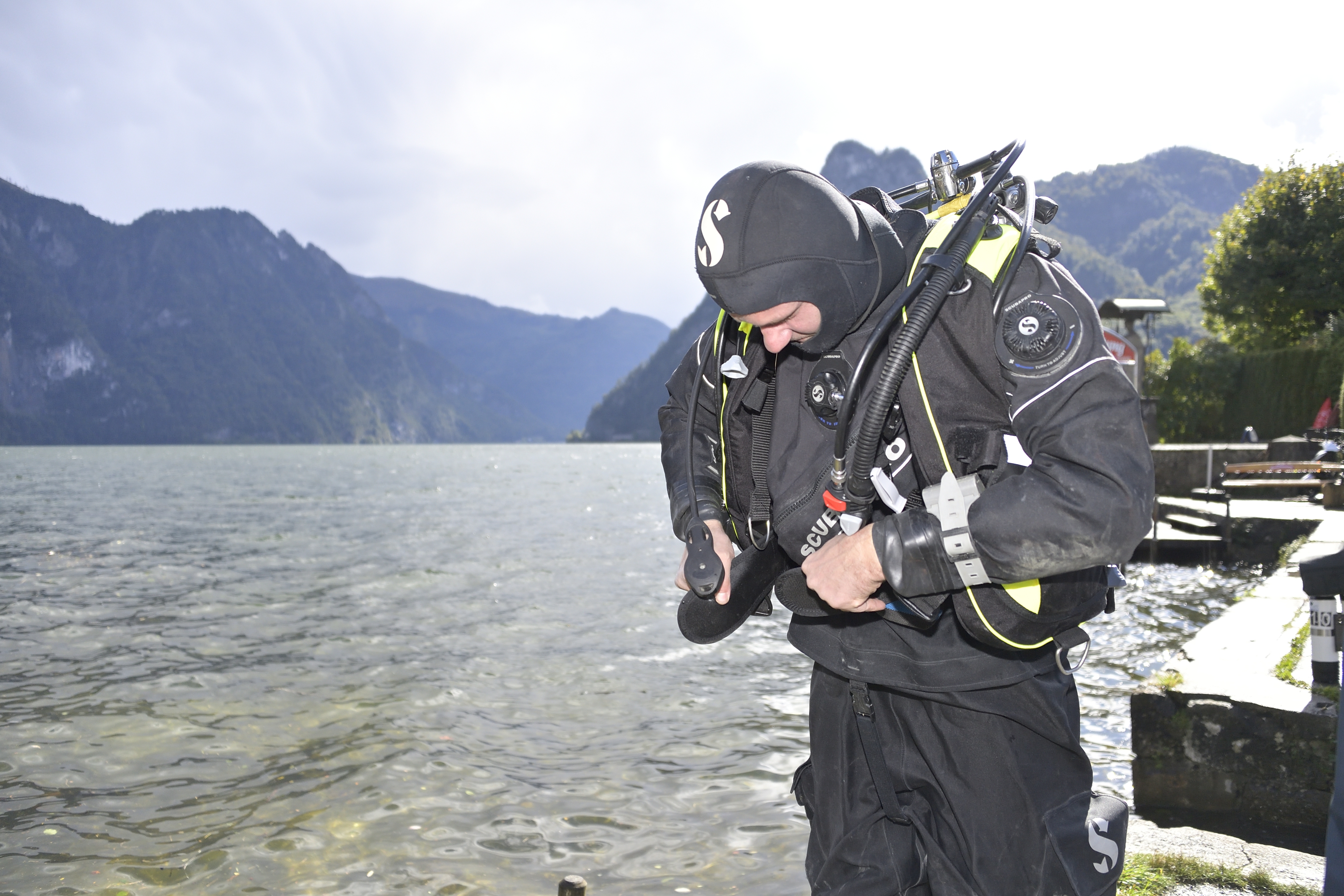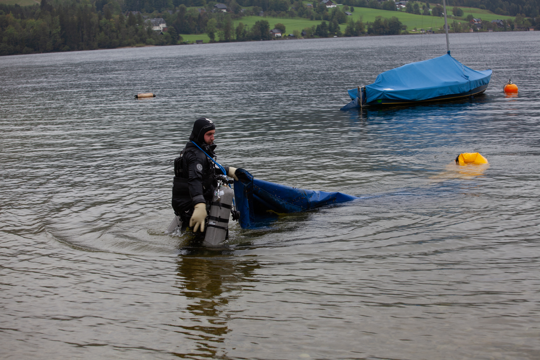 Vorbereitungen für den Taucheinsatz bei der Seenreinigung am Traunsee (OÖ, 20.9.2022)