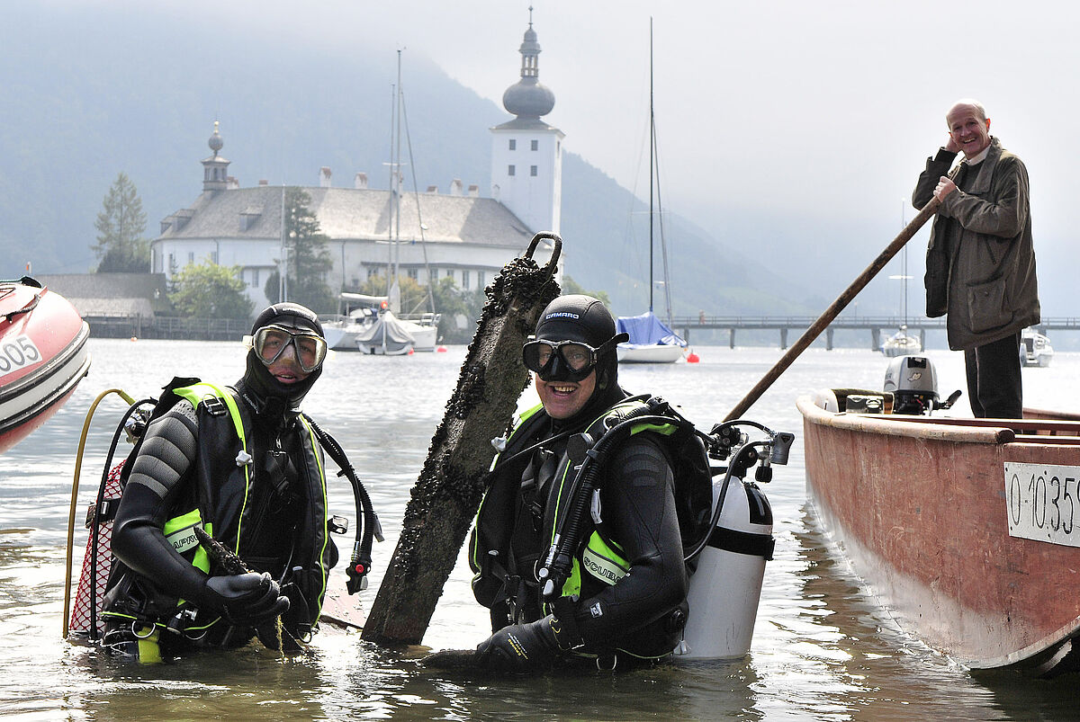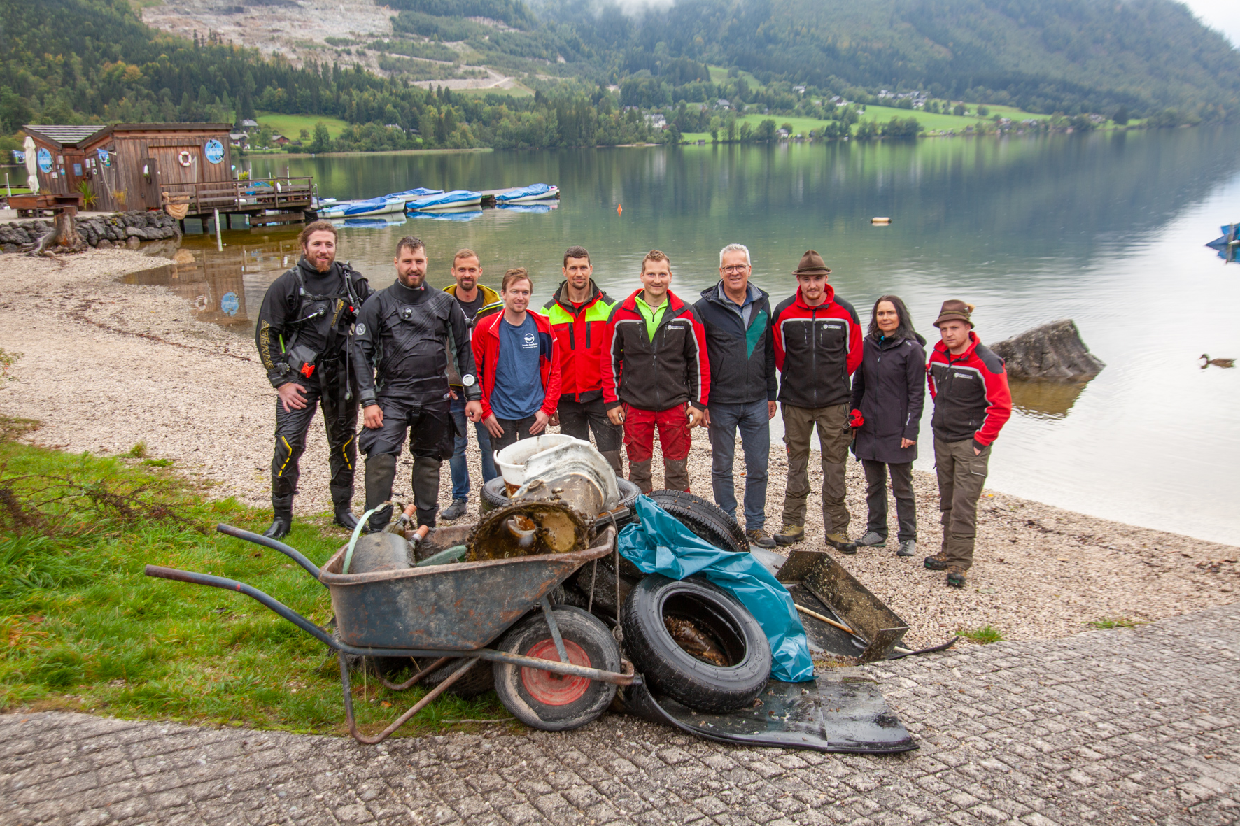 Örtliche Tauchschule, Schifffahrt Grundlsee, Gemeinde und Bundesforste gemeinsam im Einsatz bei der Seenreinigung am Grundlsee (Stmk., 16.9.2022)