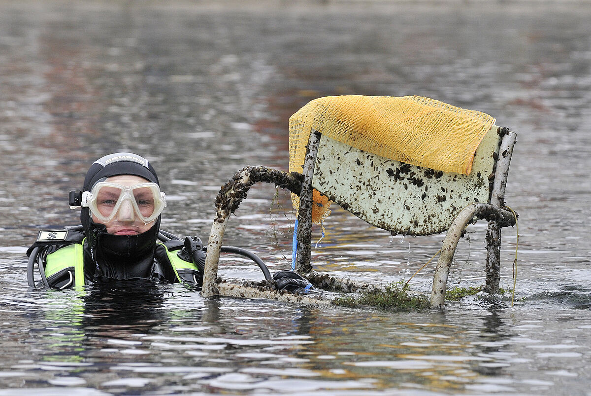 Taucher mit Müll aus dem Traunsee (OÖ, 2009)