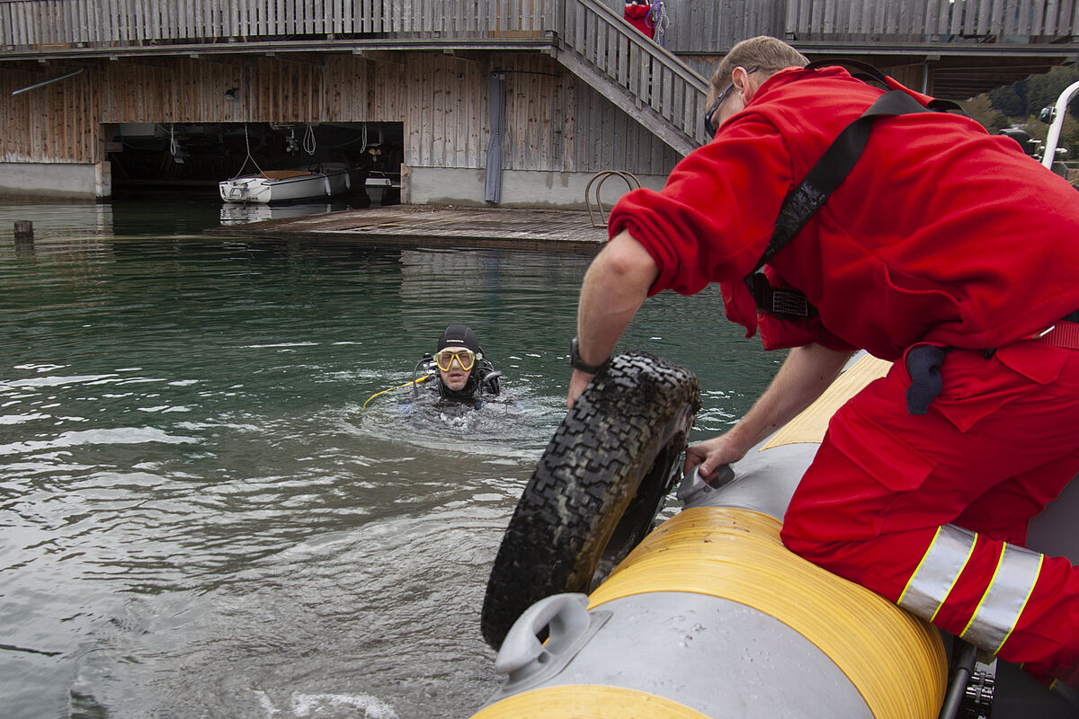 Autoreifen werden aus dem Fuschlsee geborgen (Sbg., 1.10.2022)