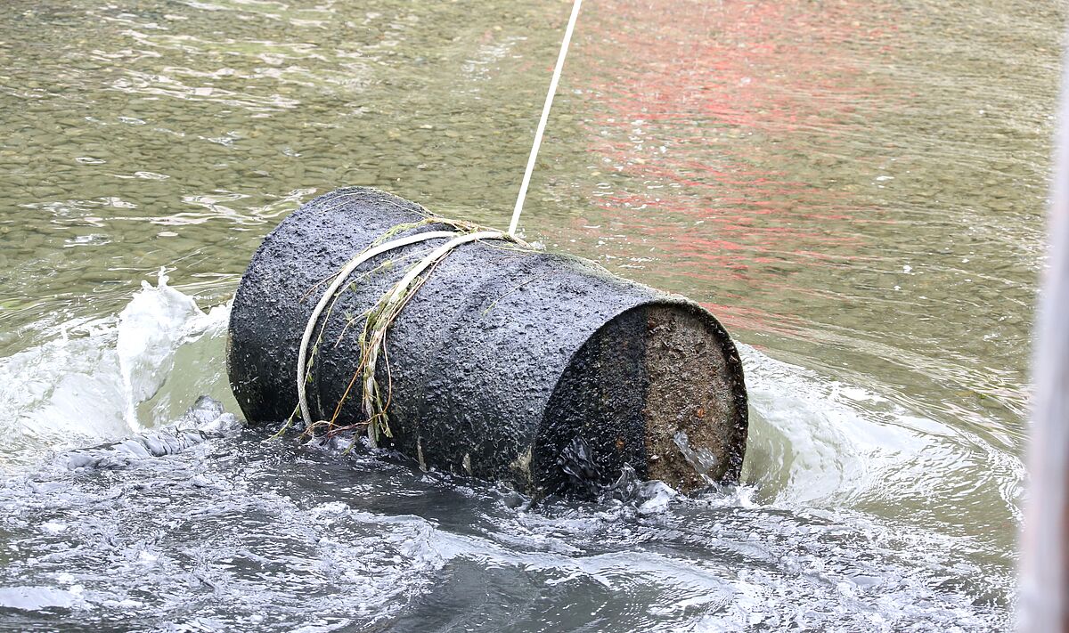 Ein Ölfass wird aus dem Fuschlsee geborgen (Sbg., 1.10.2022)