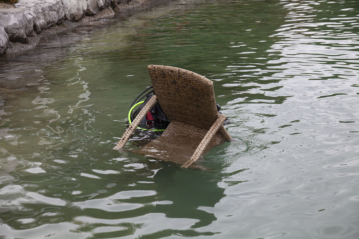 Taucher*innen bergen einen Gartenstuhl aus dem Fuschlsee (Sbg., 1.10.2022)
