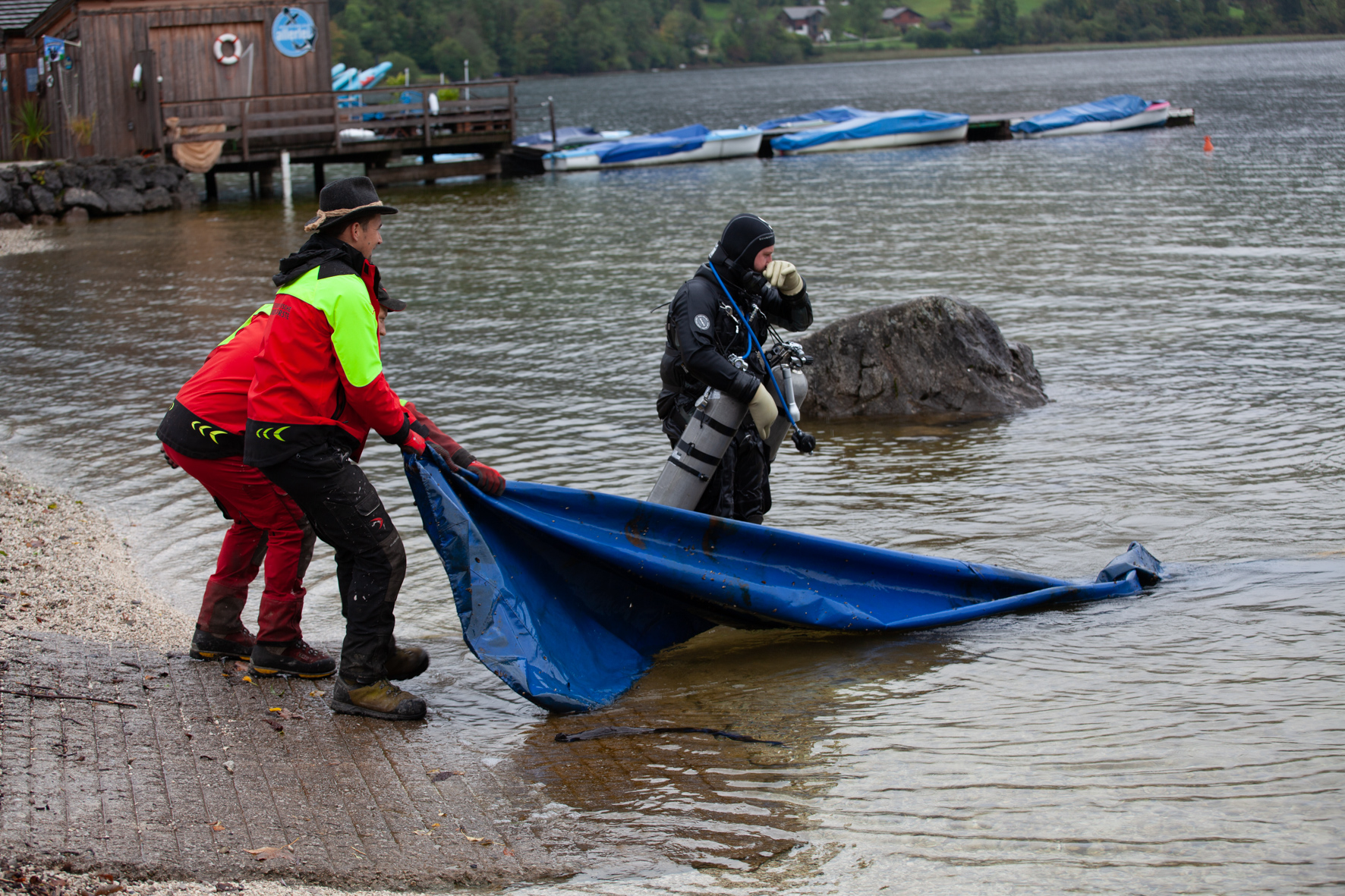 Plastikplanen werden aus dem Grundlsee geborgen (Stmk., 16.9.2022)