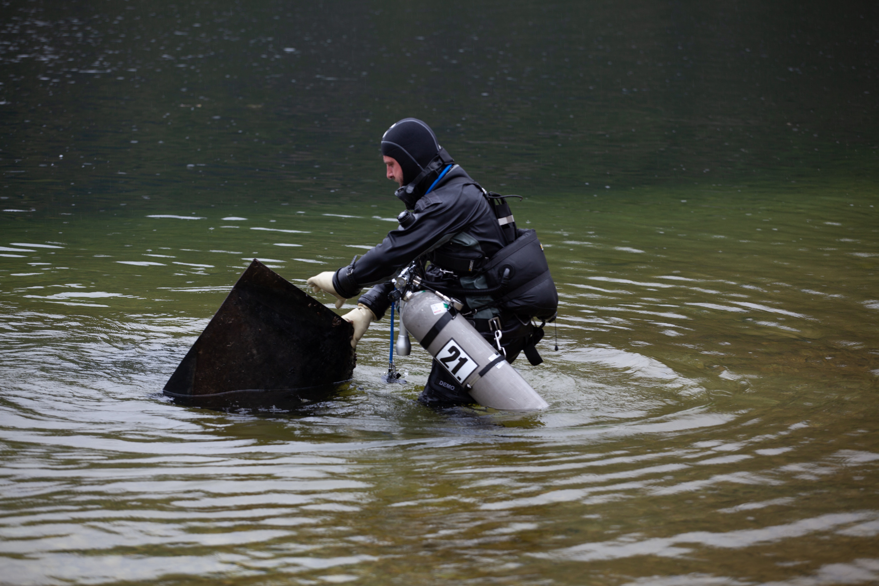 Taucher*innen bei der Müllbergung am Wörthersee (Ktn., 2020)