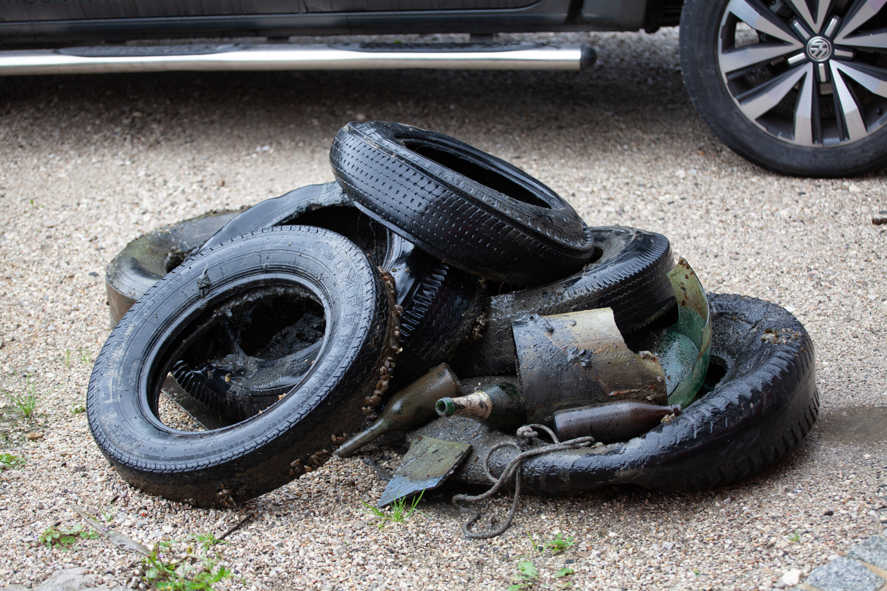 Aus dem Grundlsee geborgene Autoreifen und anderer Unrat (Stmk., 16.9.2022)