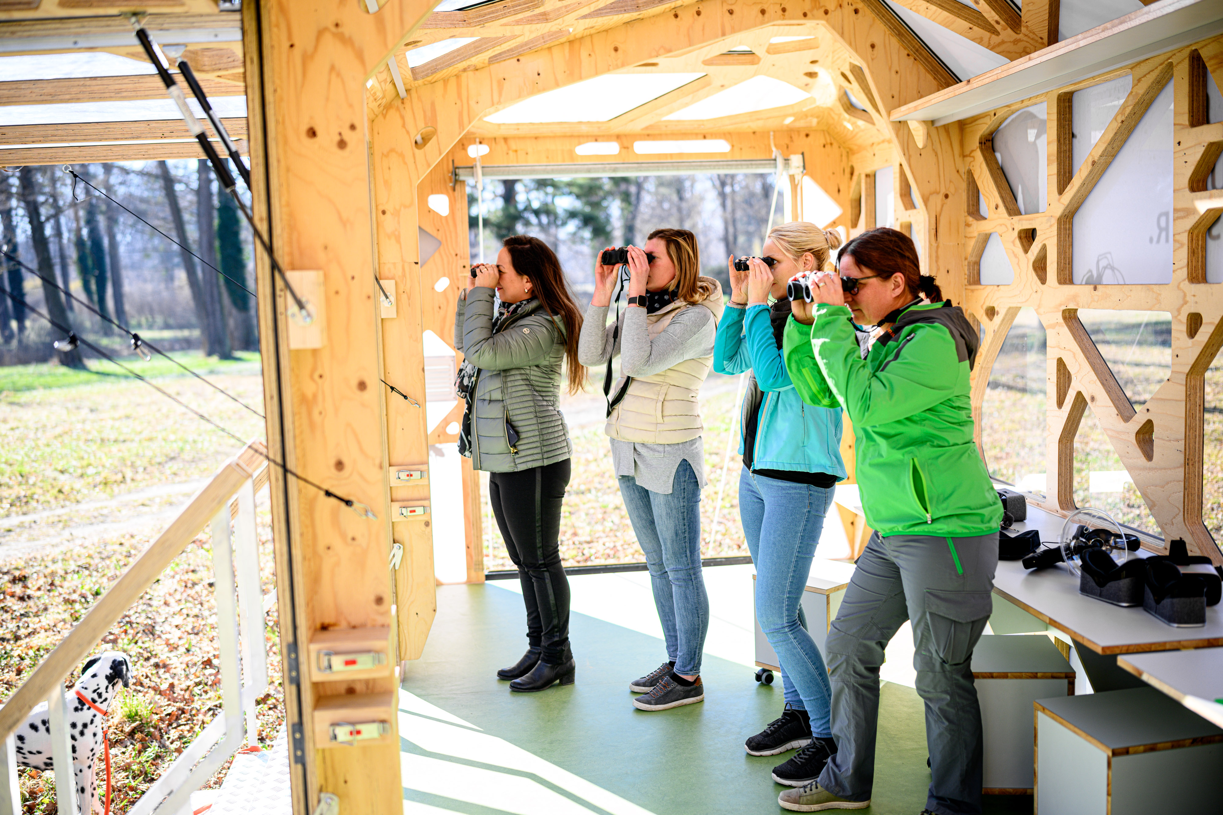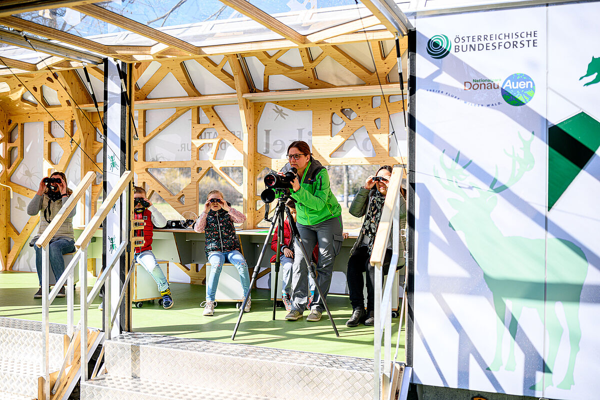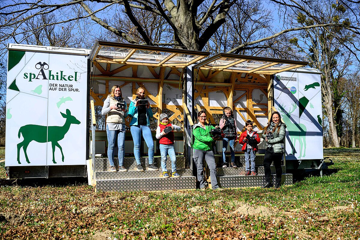 Naturbeobachter*innen mit 3D-Brillen im Spähikel