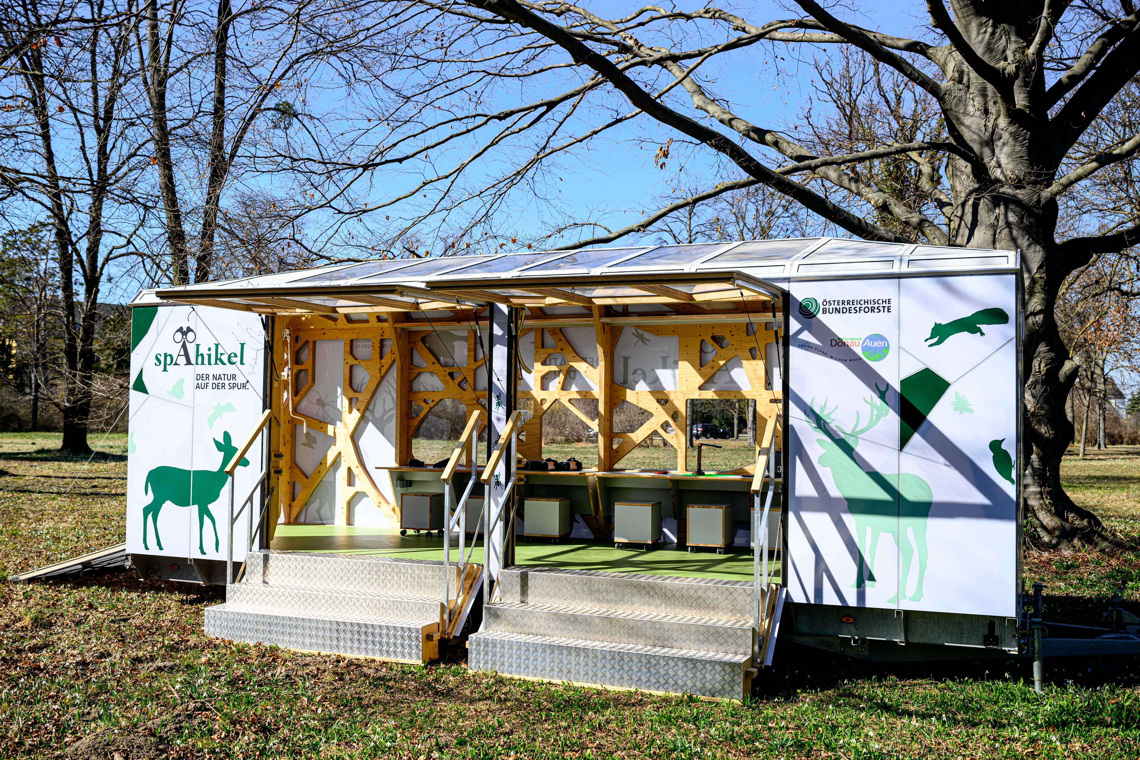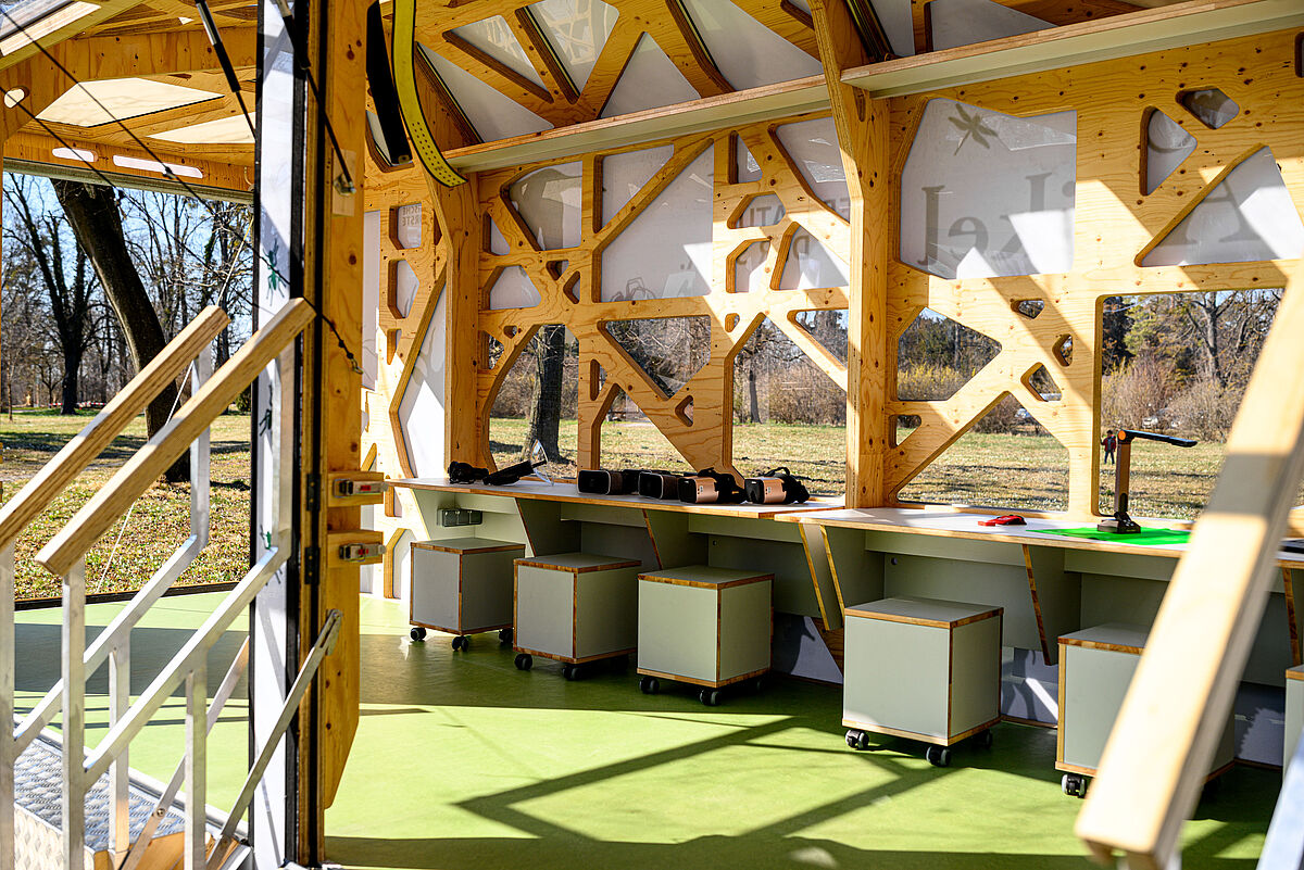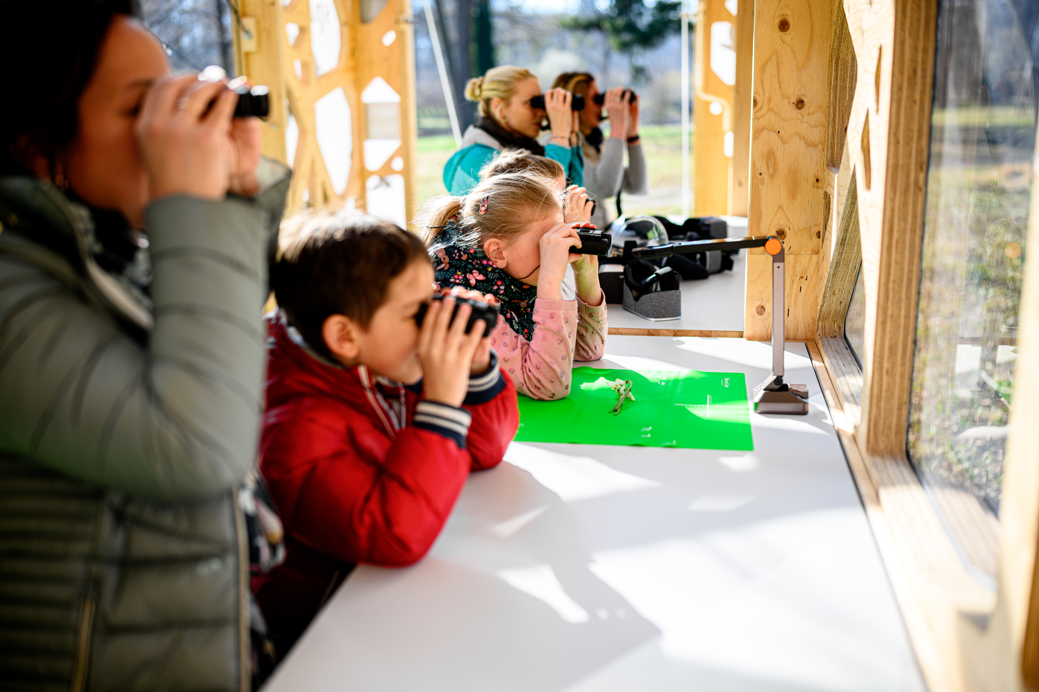 Naturbeobachter*innen mit 3D-Brillen im Spähikel