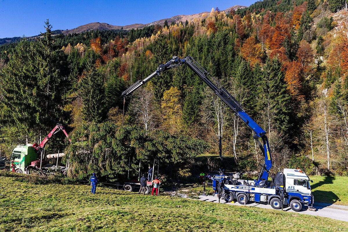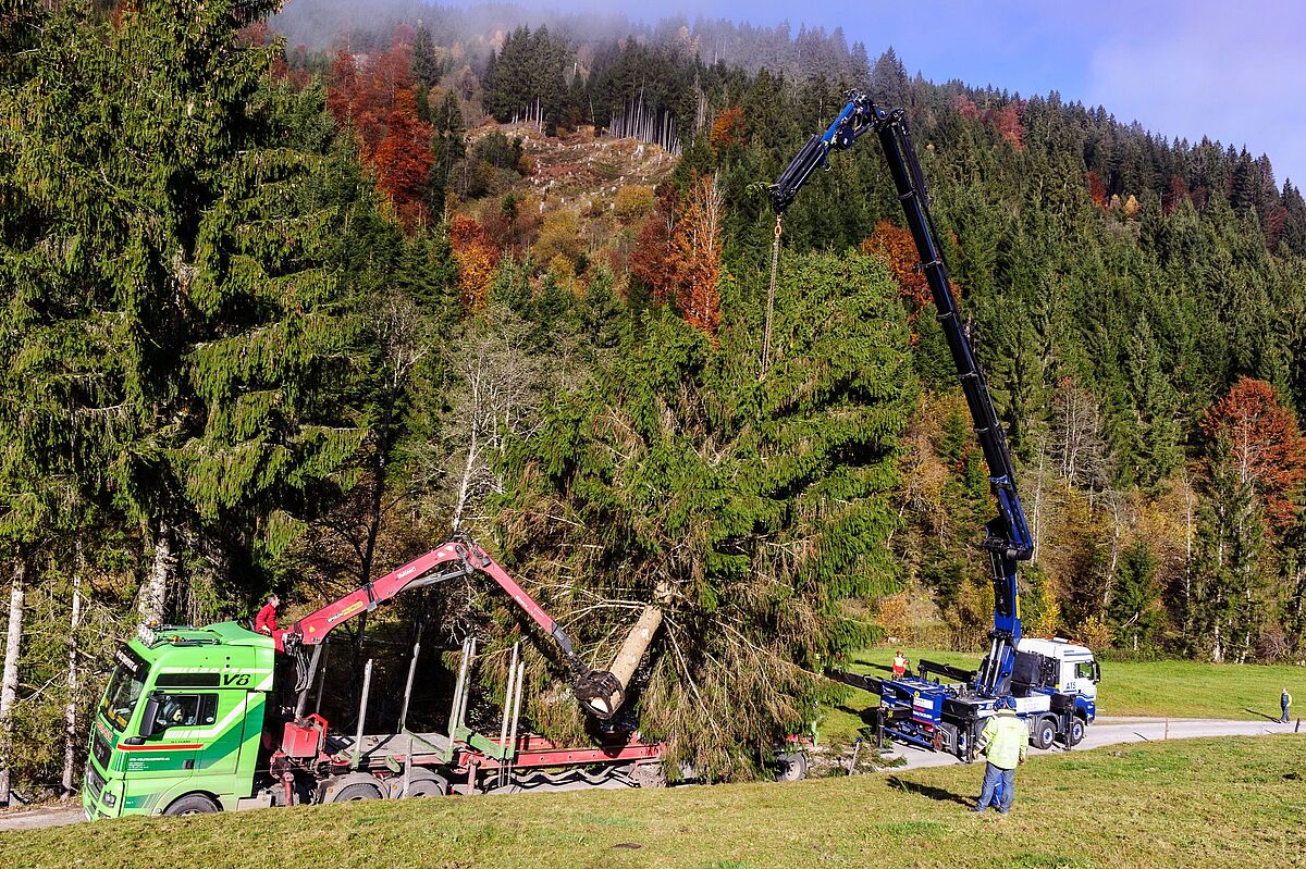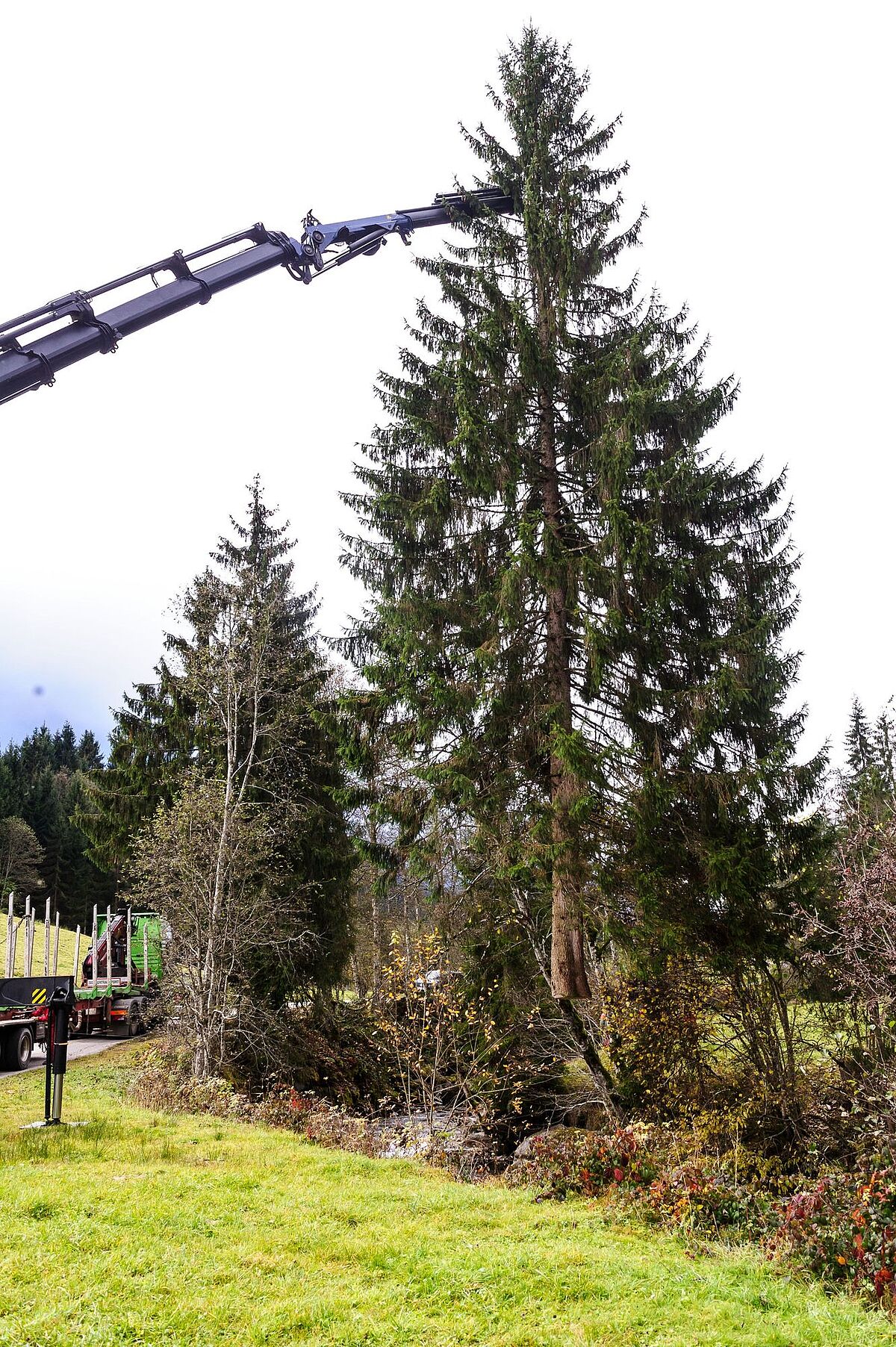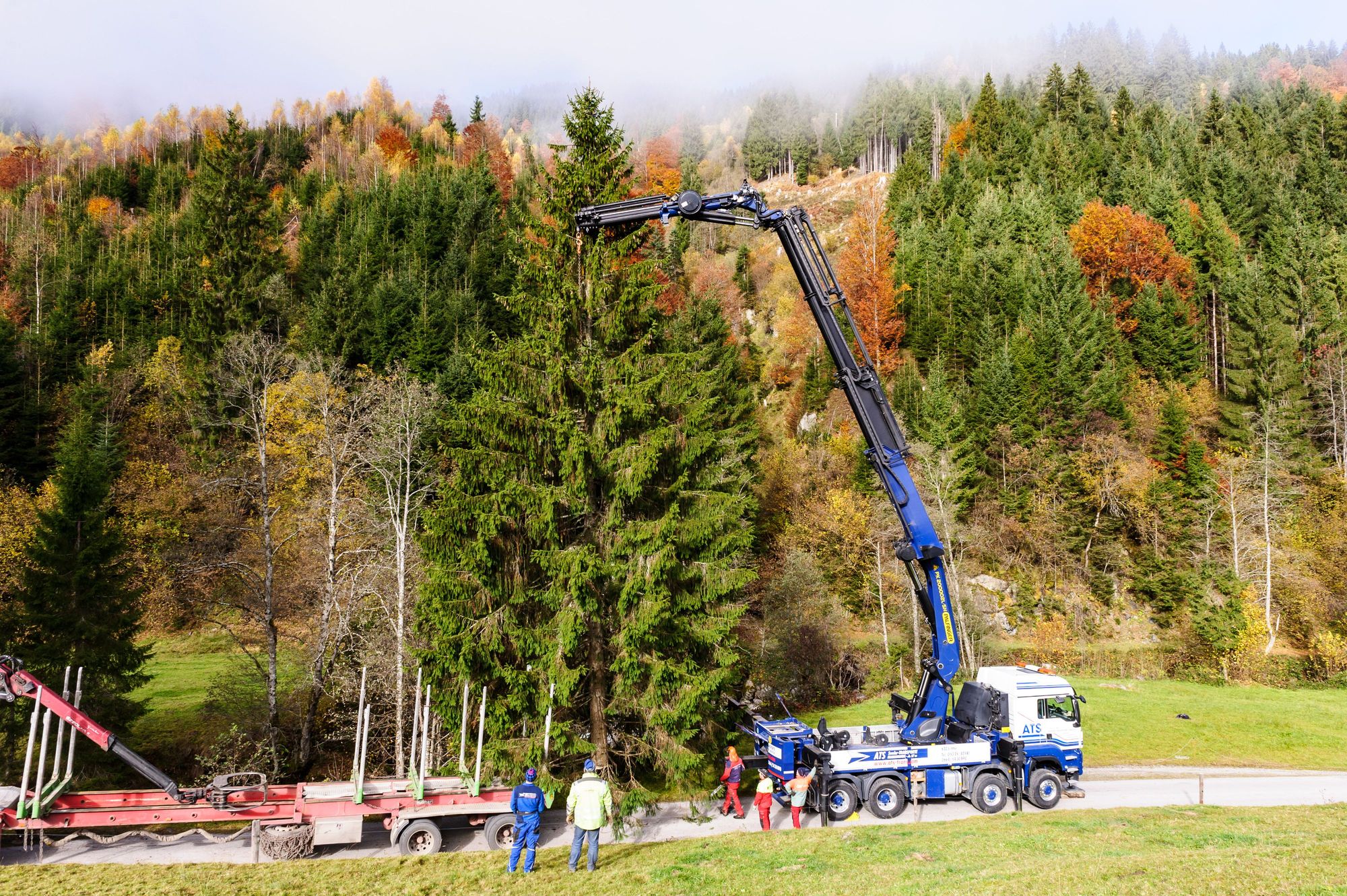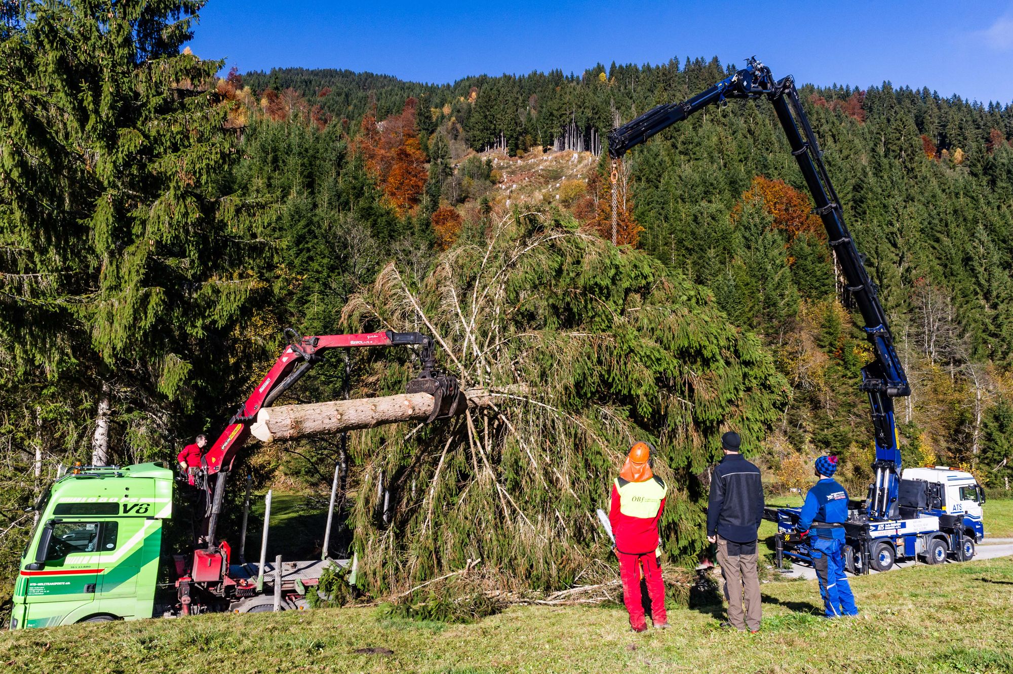 Die ausgewählte 18 Meter hohe Fichte aus dem Forstrevier Brixental (Tirol)
