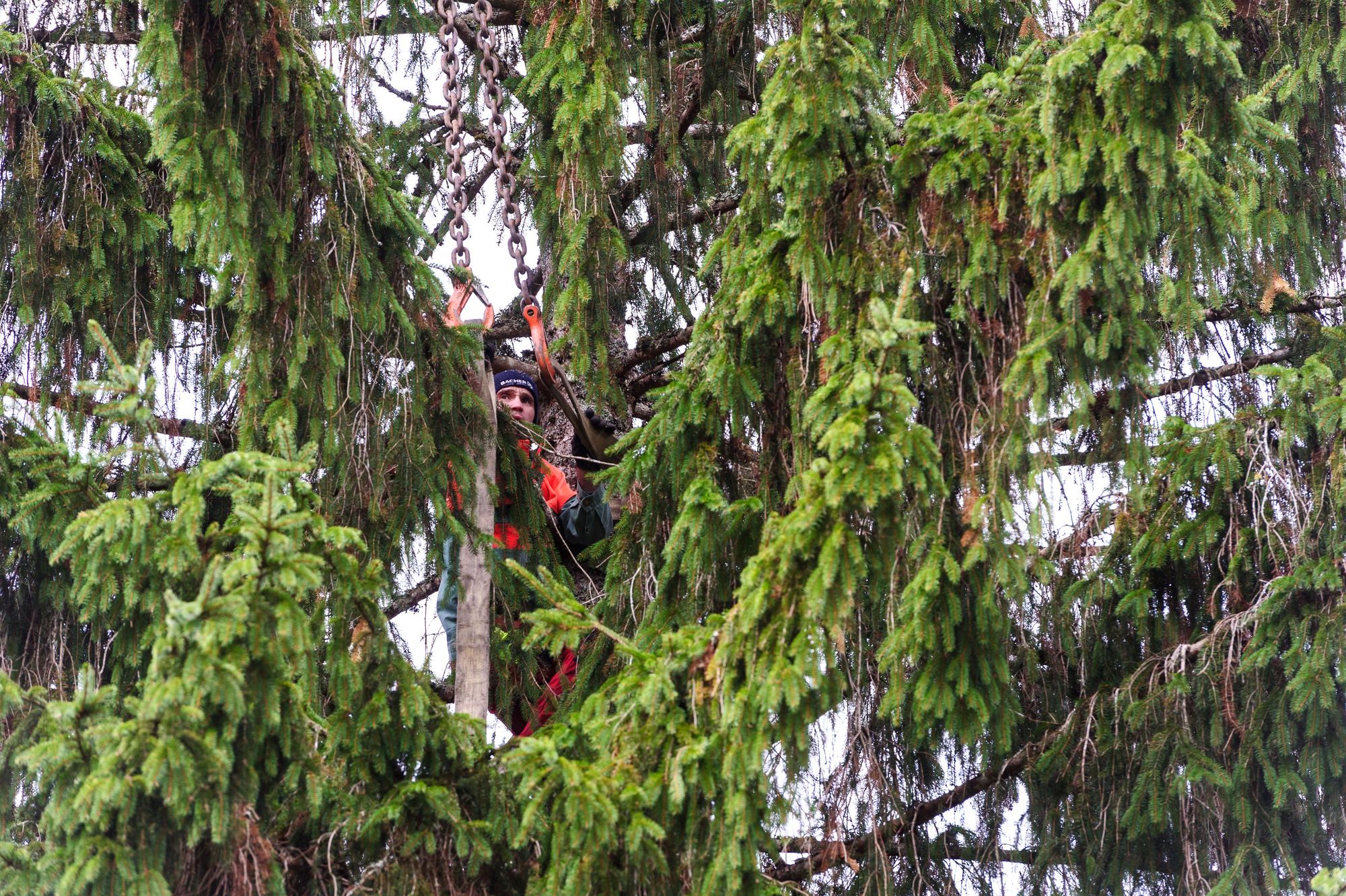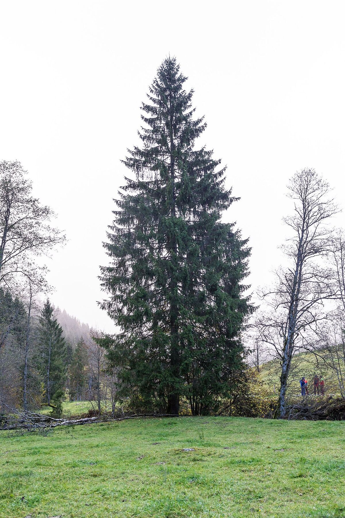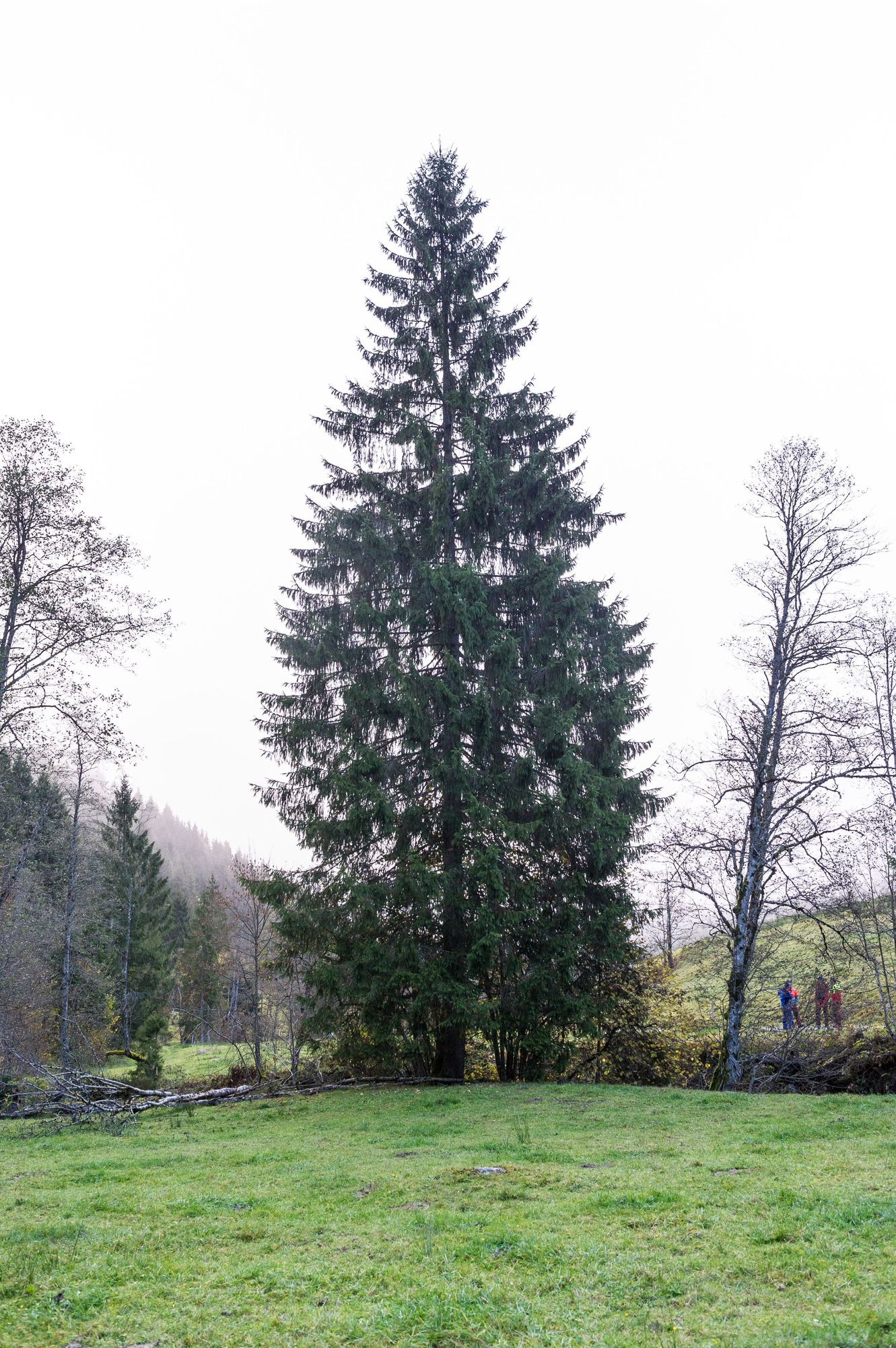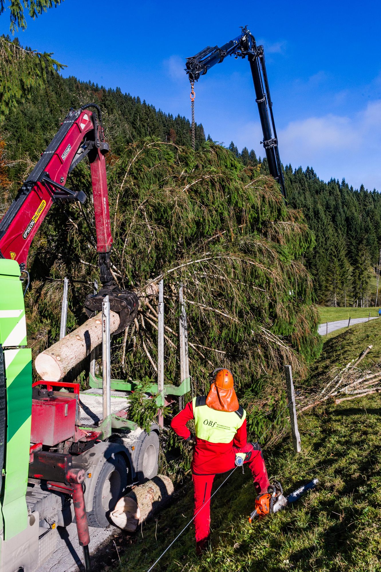 Die ausgewählte 18 Meter hohe Fichte aus dem Forstrevier Brixental (Tirol)