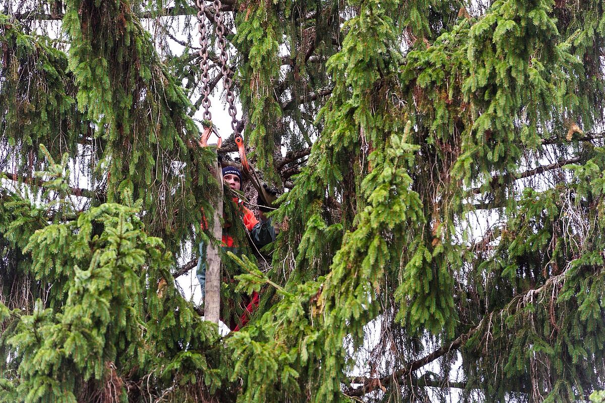 Anbringen des Baumgurtes - Baumsteiger bei der Arbeit
