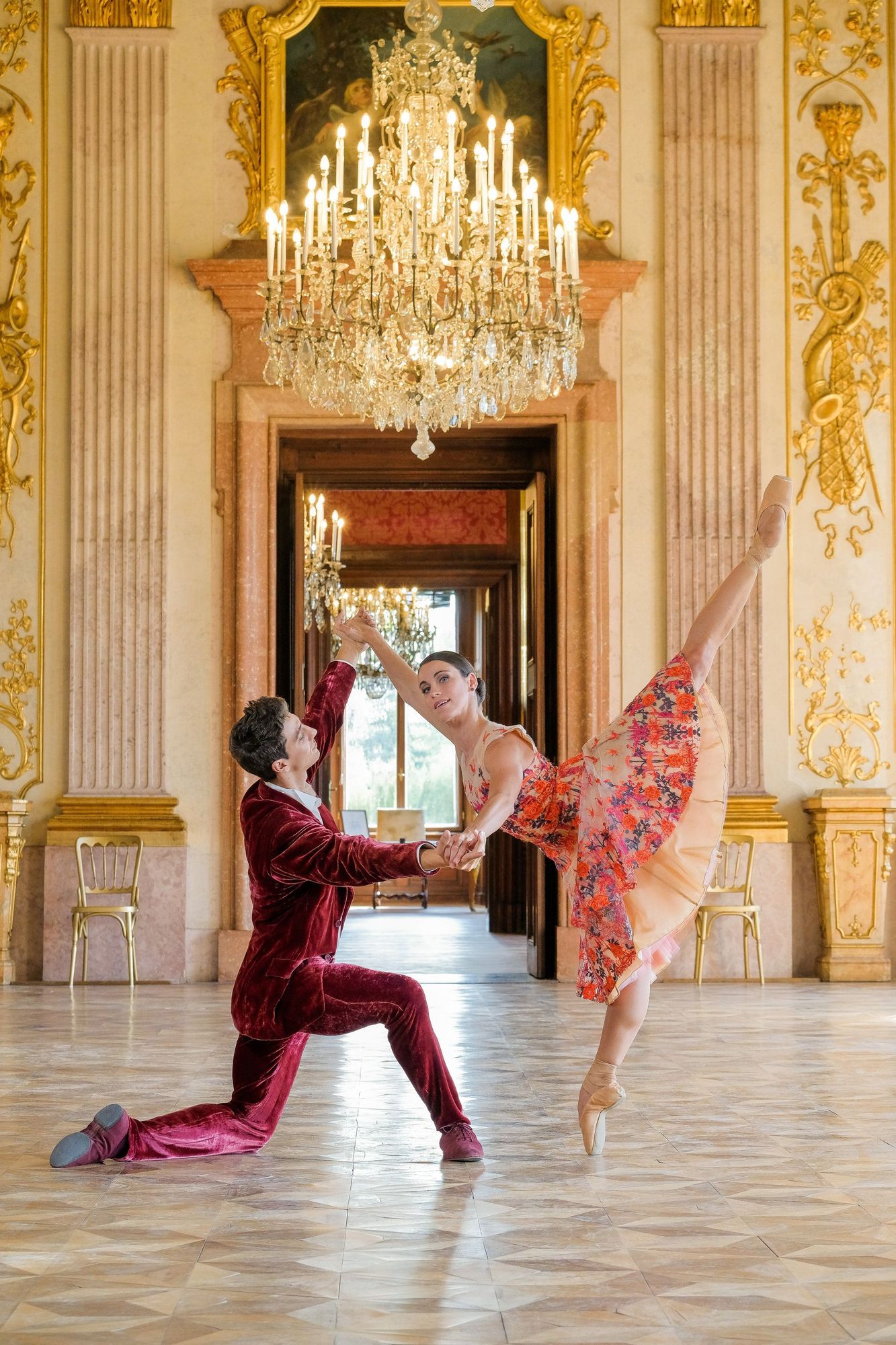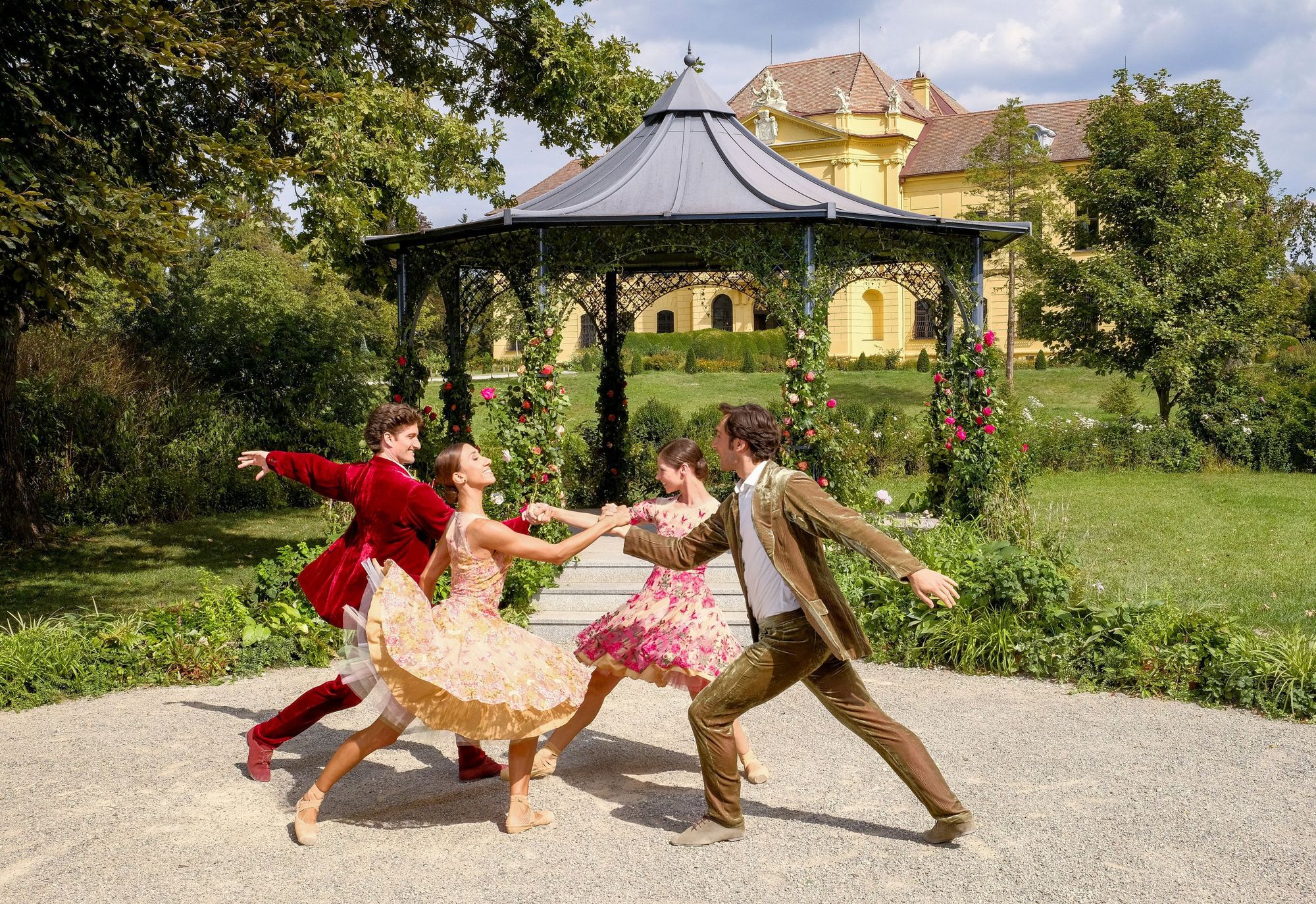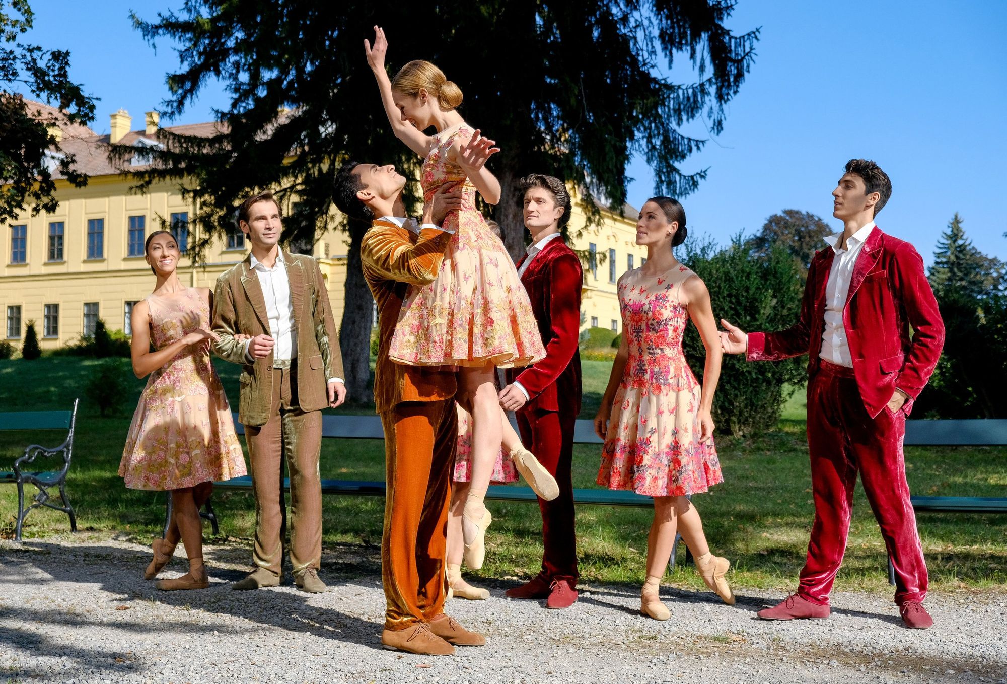 Wiener Staatsballett beim Dreh vor dem Pavillon im Schlosspark
