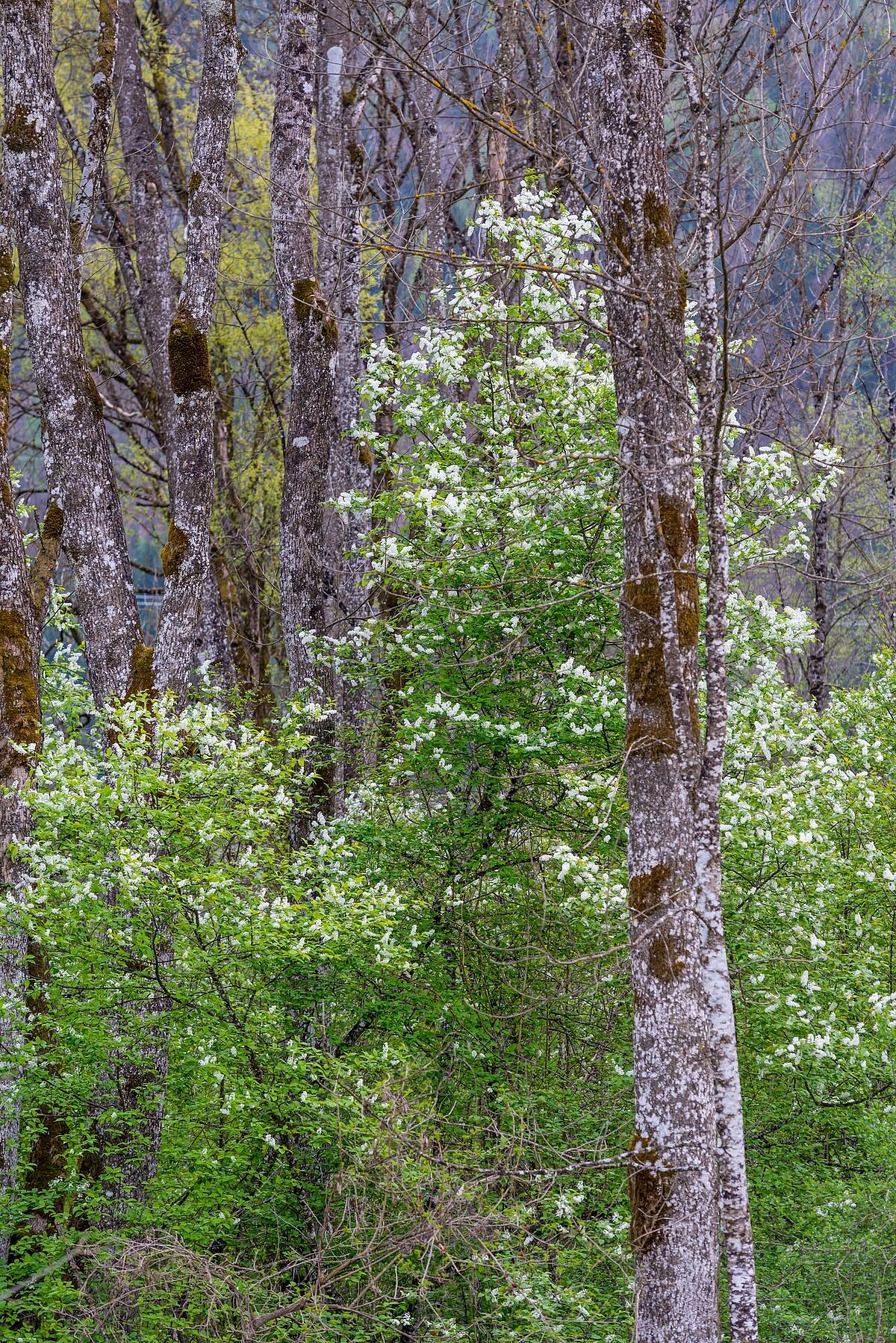 Traubenkirschen am Fuße der Karnischen Alpen im Forstrevier Hermagor (Ktn)