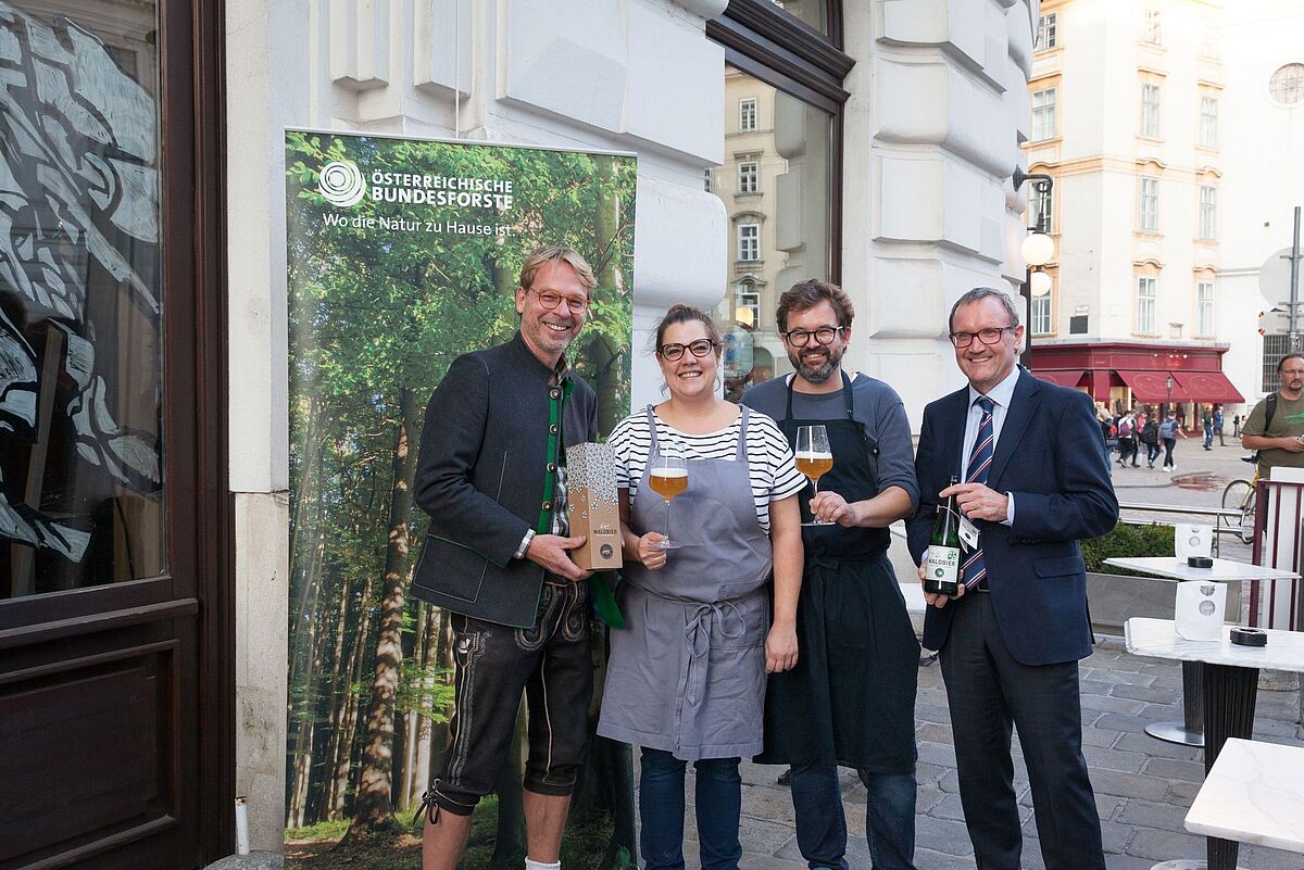 ÖBf-Vorstand Rudolf Freidhager (li.) und Braumeister Axel Kiesbye verkosten das neue Waldbier im rien
