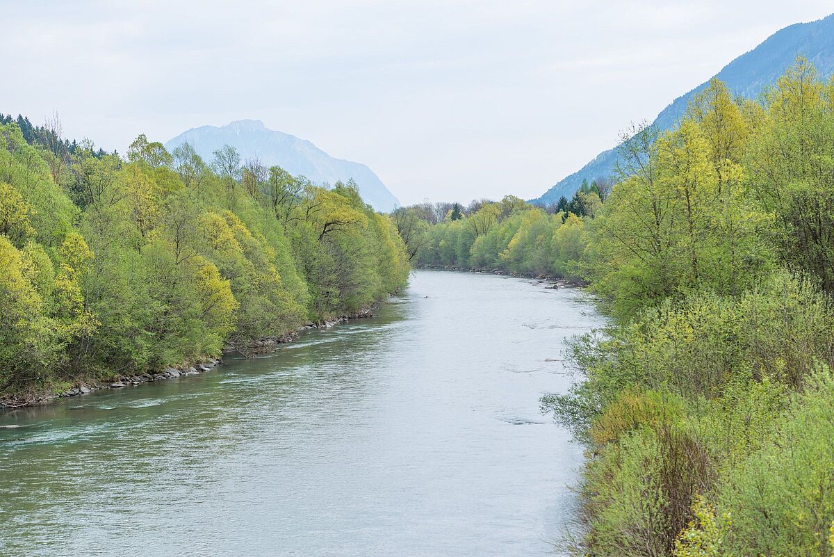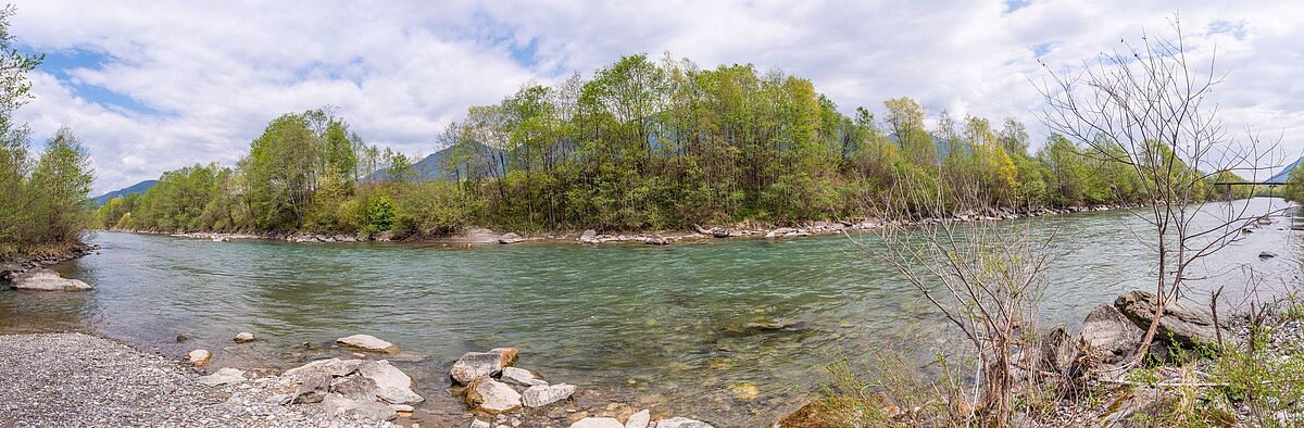 Flussufer der Gail am Fuße der Karnischen Alpen im Forstrevier Hermagor (Ktn)