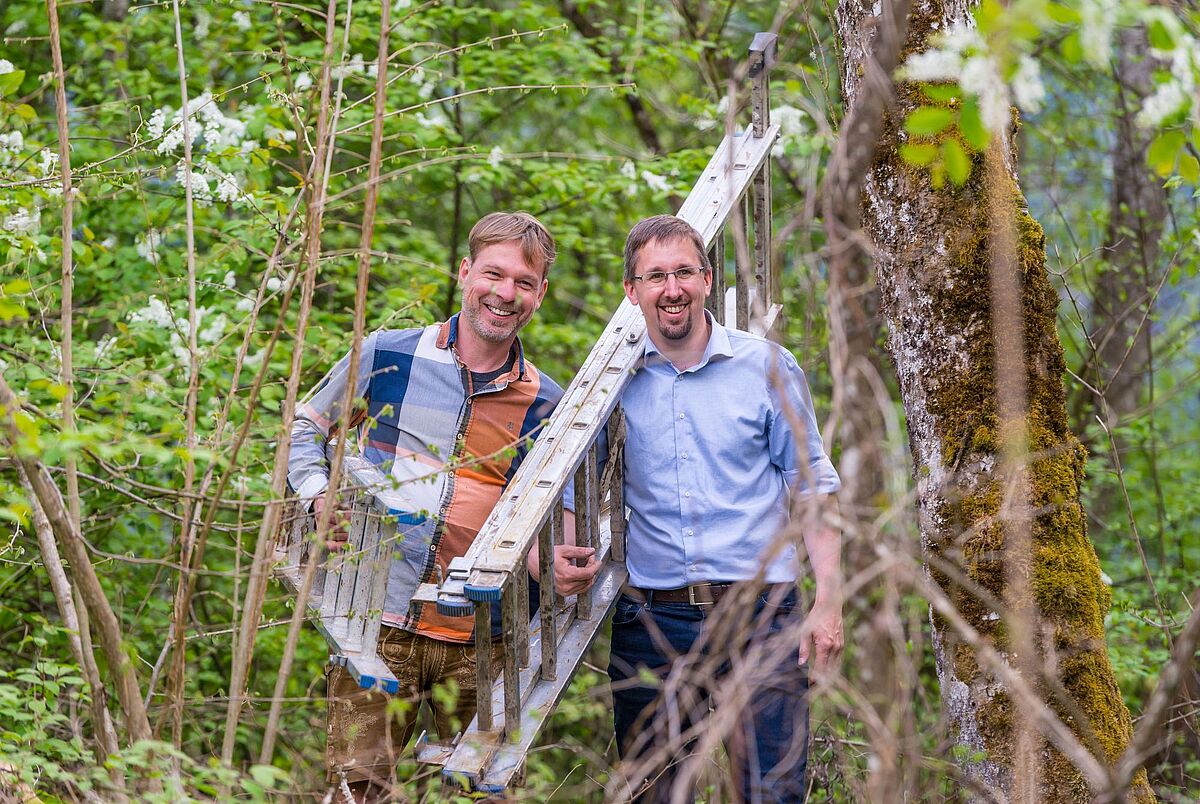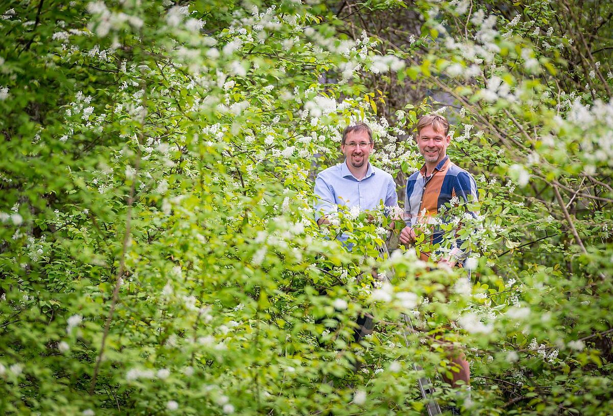 Bundesforste-Revierleiter Harald Zollner (li.) mit Braumeister Alex Kiesbye bei der Ernte der Kirschblüten