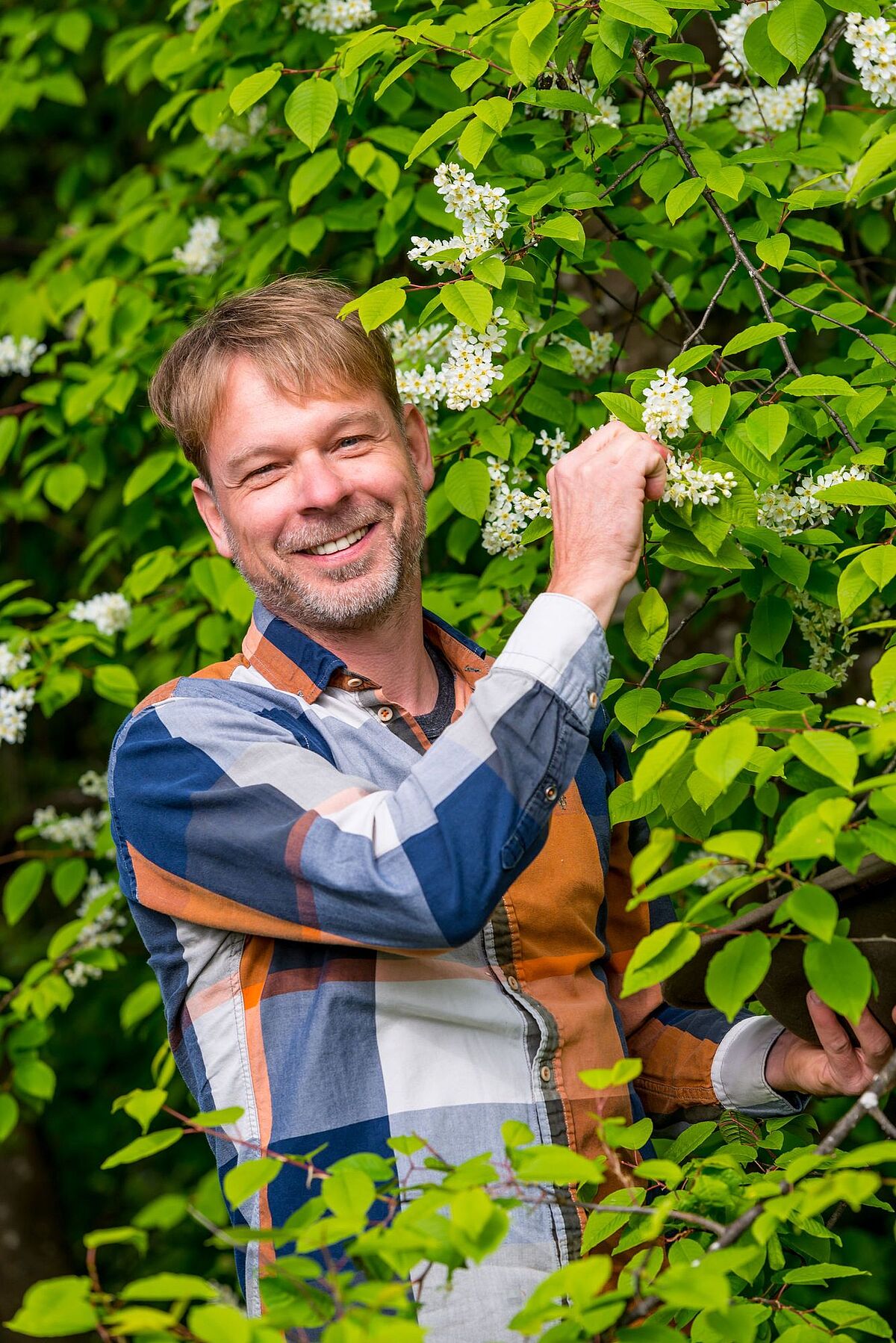 Bundesforste-Revierleiter Harald Zollner bei der Ernte der Kirschblüten