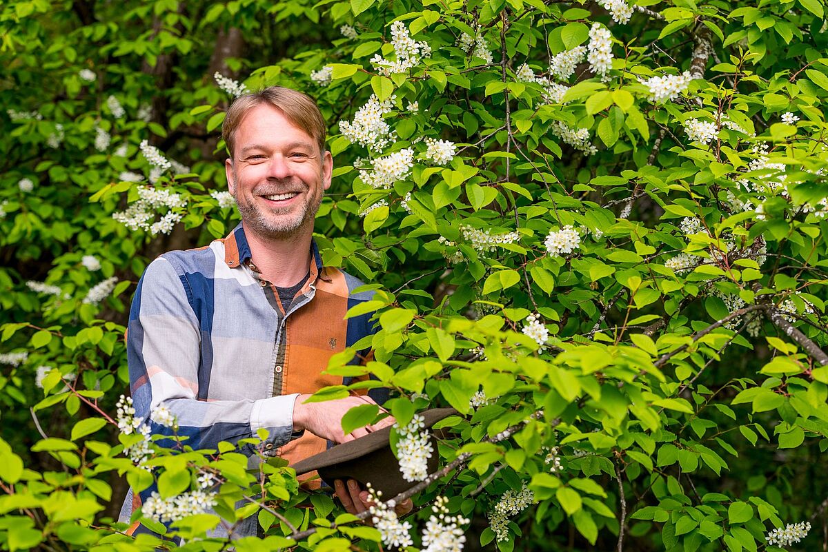 Braumeister Axel Kiesbye bei der Waldbier-Ernte