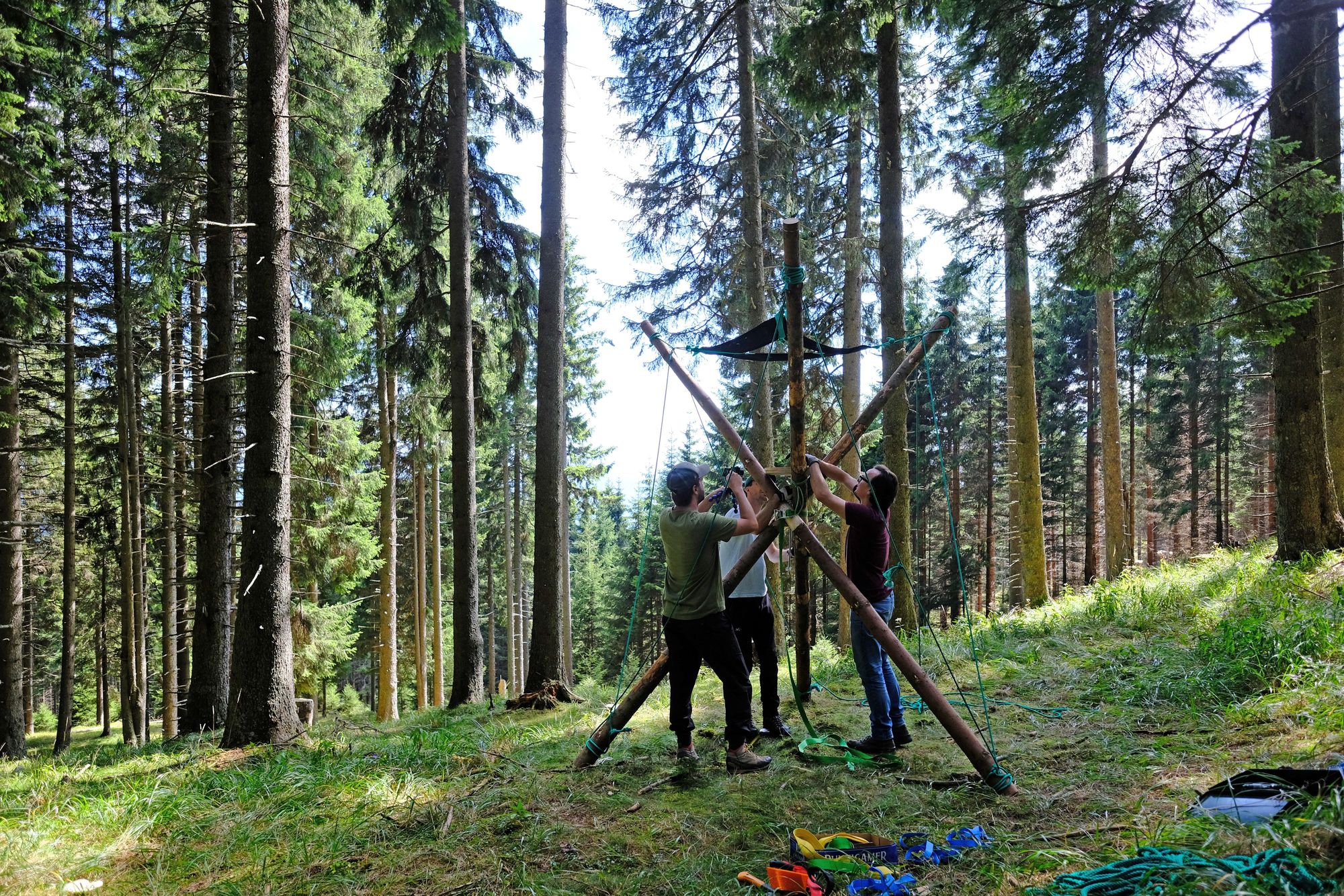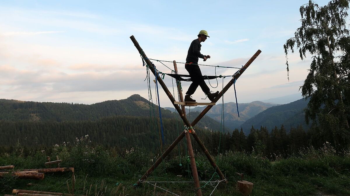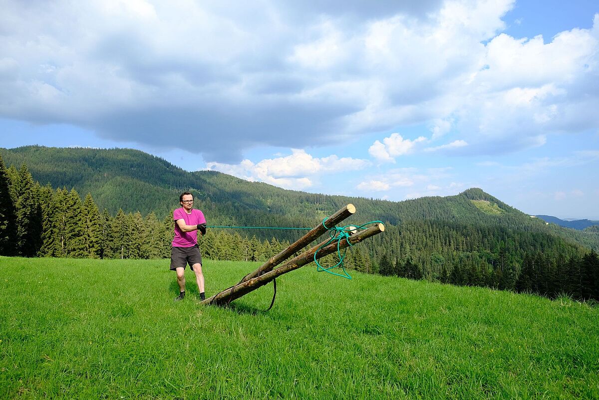 Errichtung des DREIBAUMES in den Wäldern am Oberen Pfleger (Stmk.)