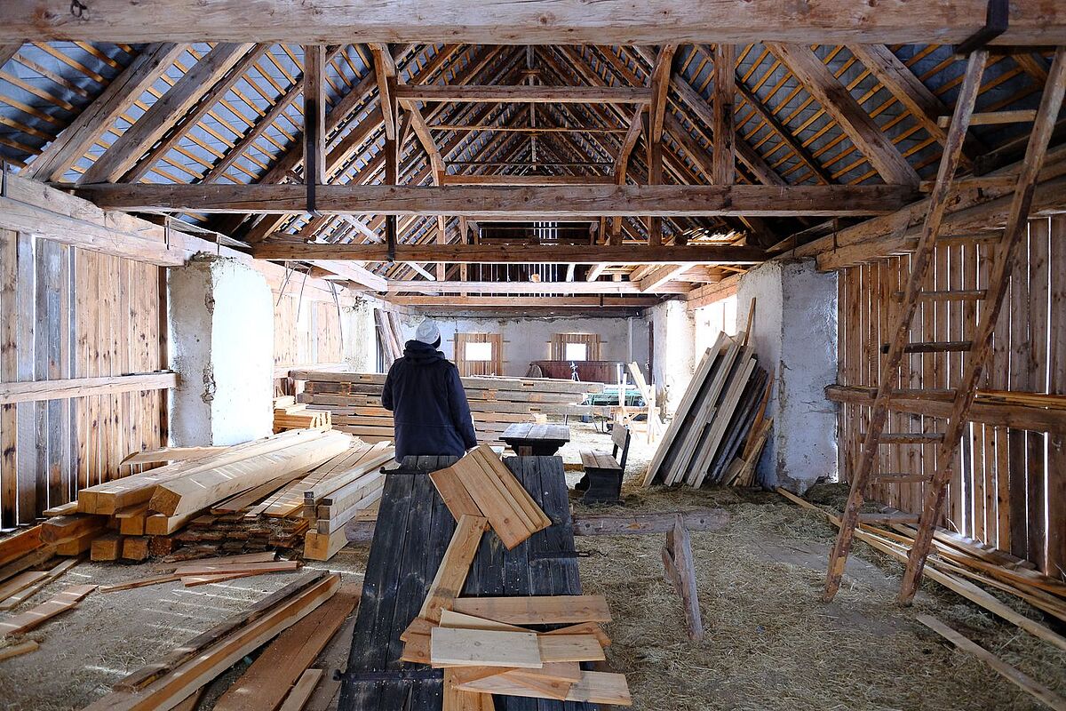 Werkraum in der Waldhütte am Oberen Pfleger