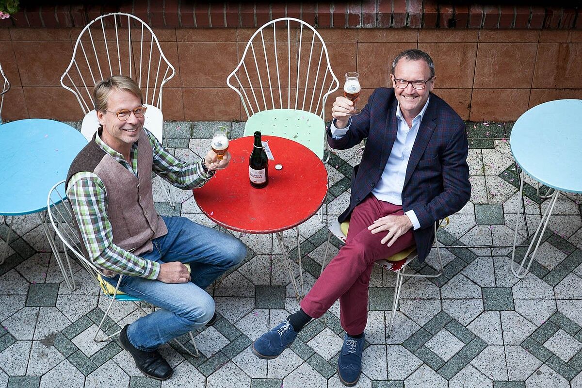 ÖBf-Vorstand Rudolf Freidhager (re.) und Braumeister Axel Kiesbye beim Verkosten im Hotel am Brillantengrund