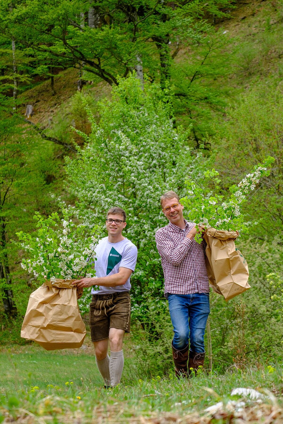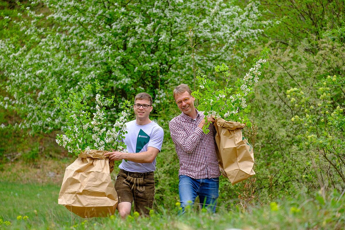 Braumeister Axel Kiesbye (li.) mit Revierleiter Bernhard Jagersberger (re.) bei der Waldbier-Ernte