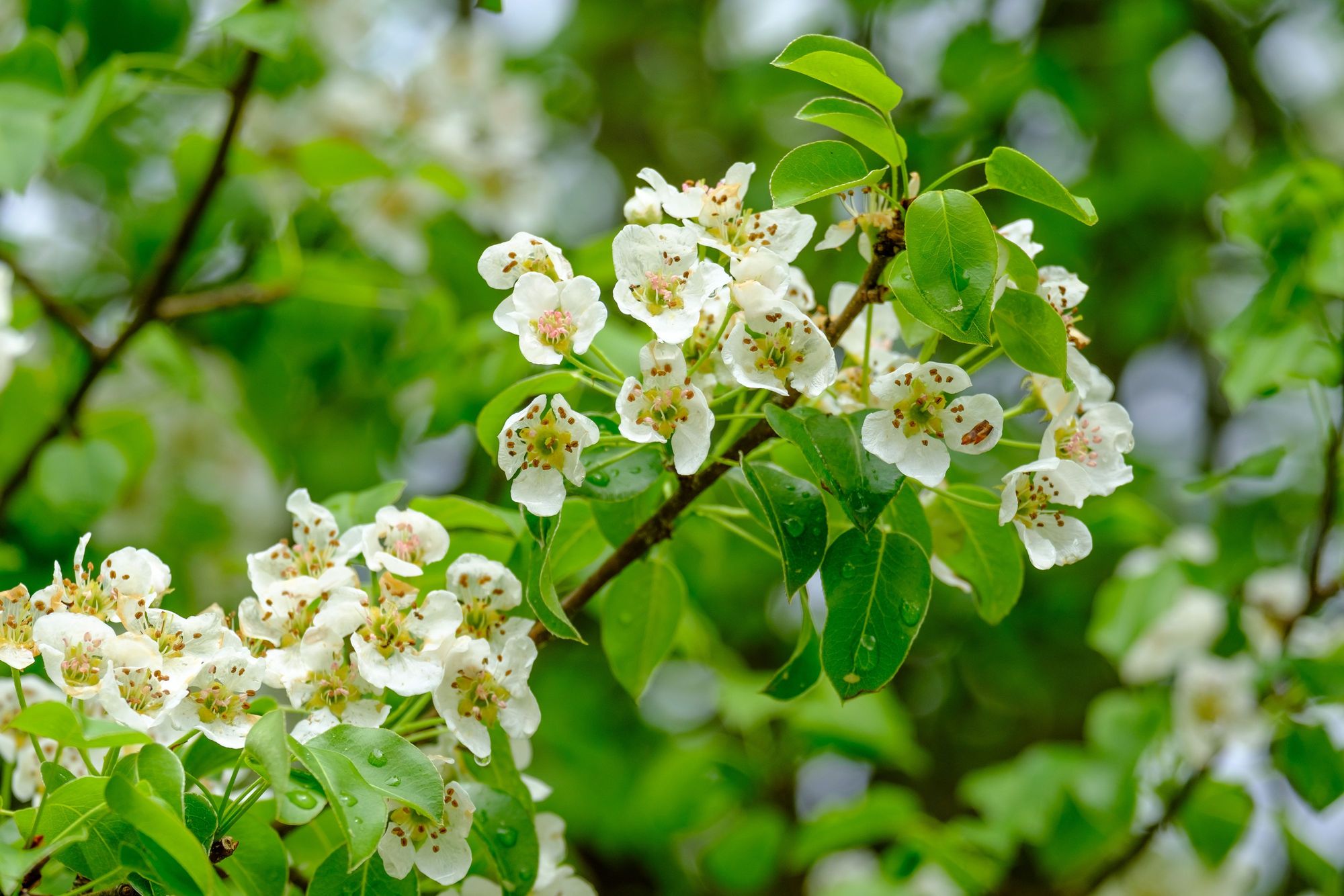 Blüten der Holzbirne (Pyrus pyraster)