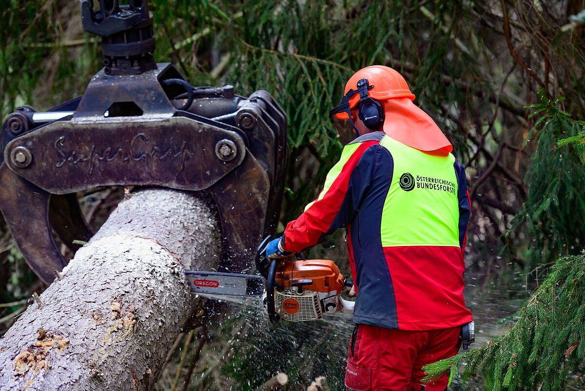 Weihnachtsbaum-Ernte im Bergwald um Stuhleck/Pretul im Forstrevier Mürzzuschlag (Stmk)