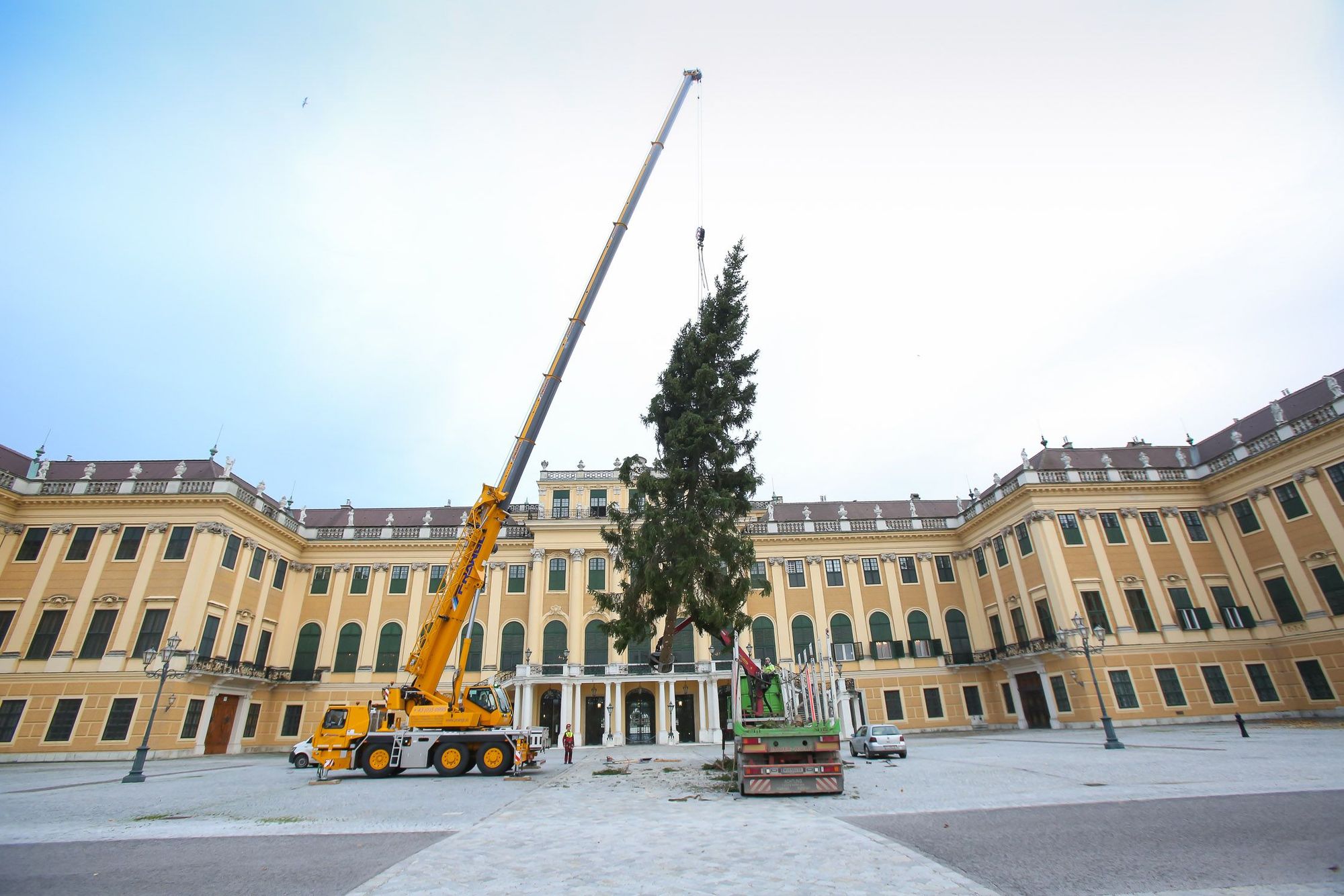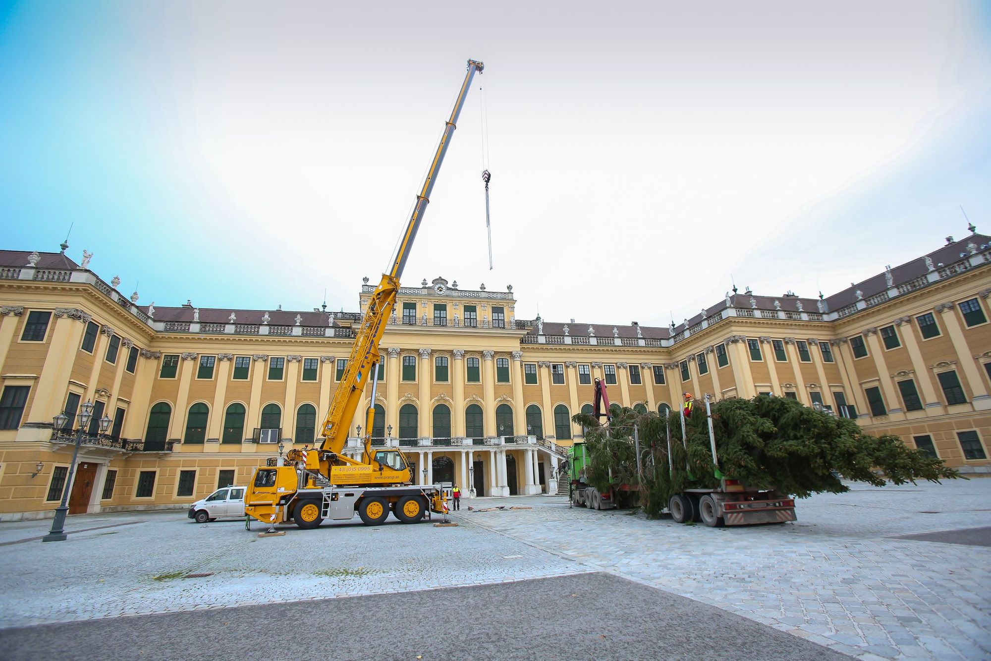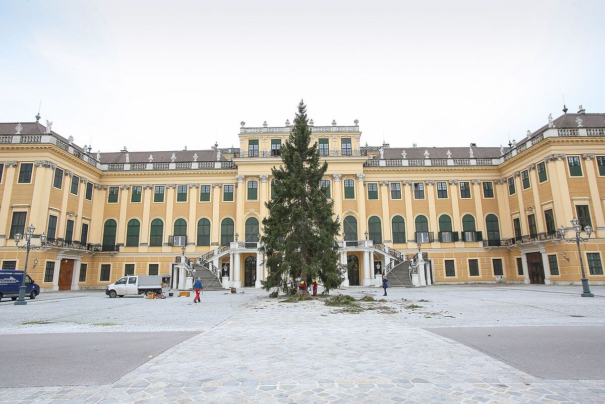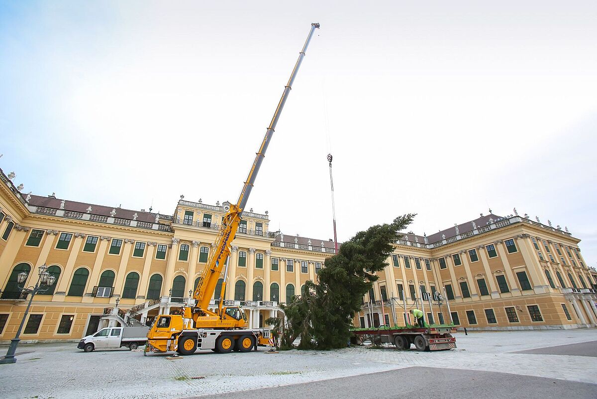 Aufstellen des Baumes vor dem Schloss Schönbrunn