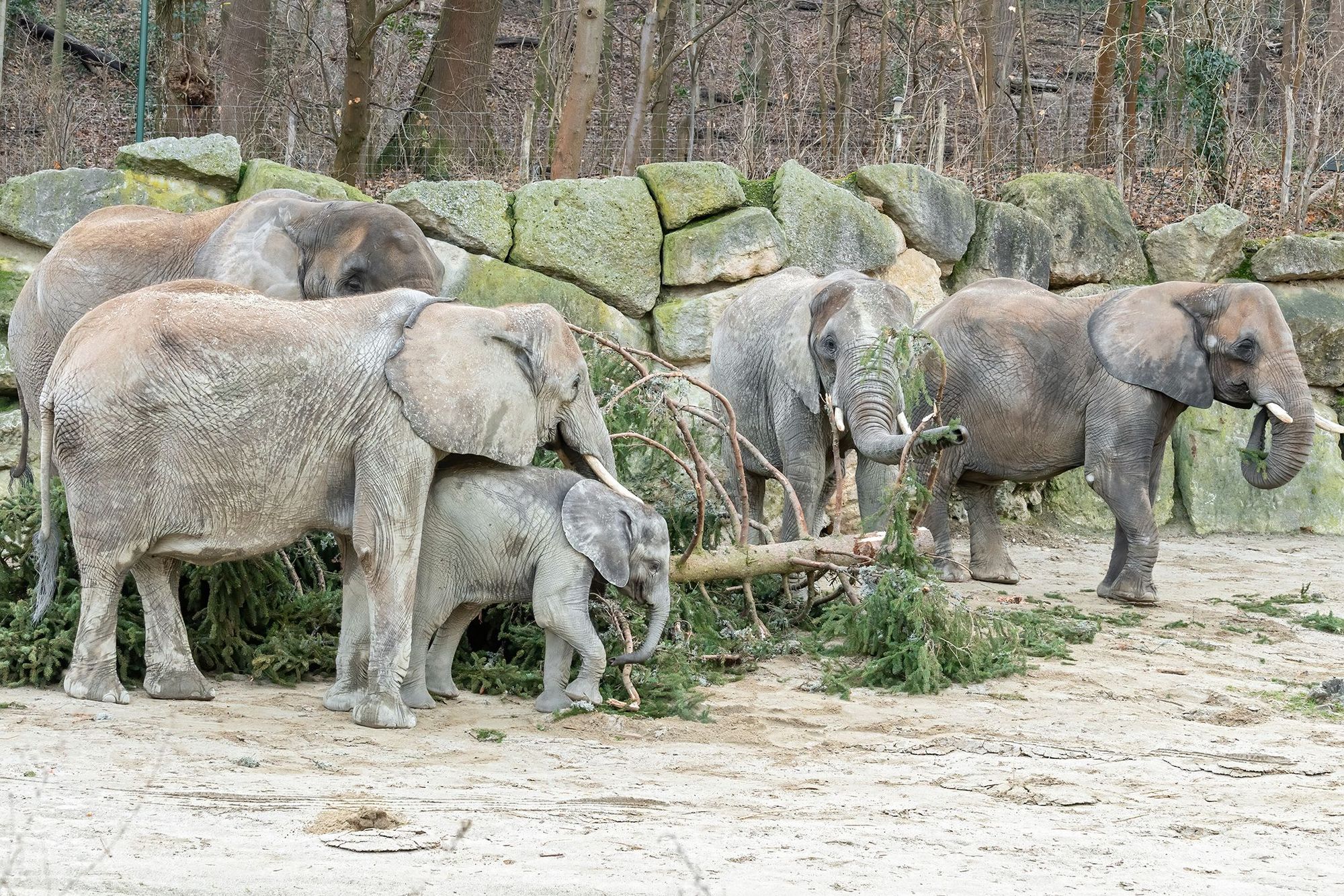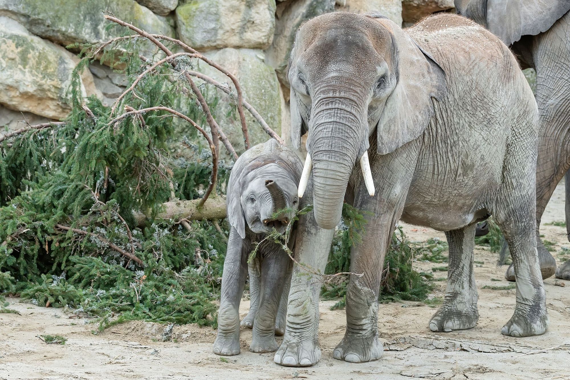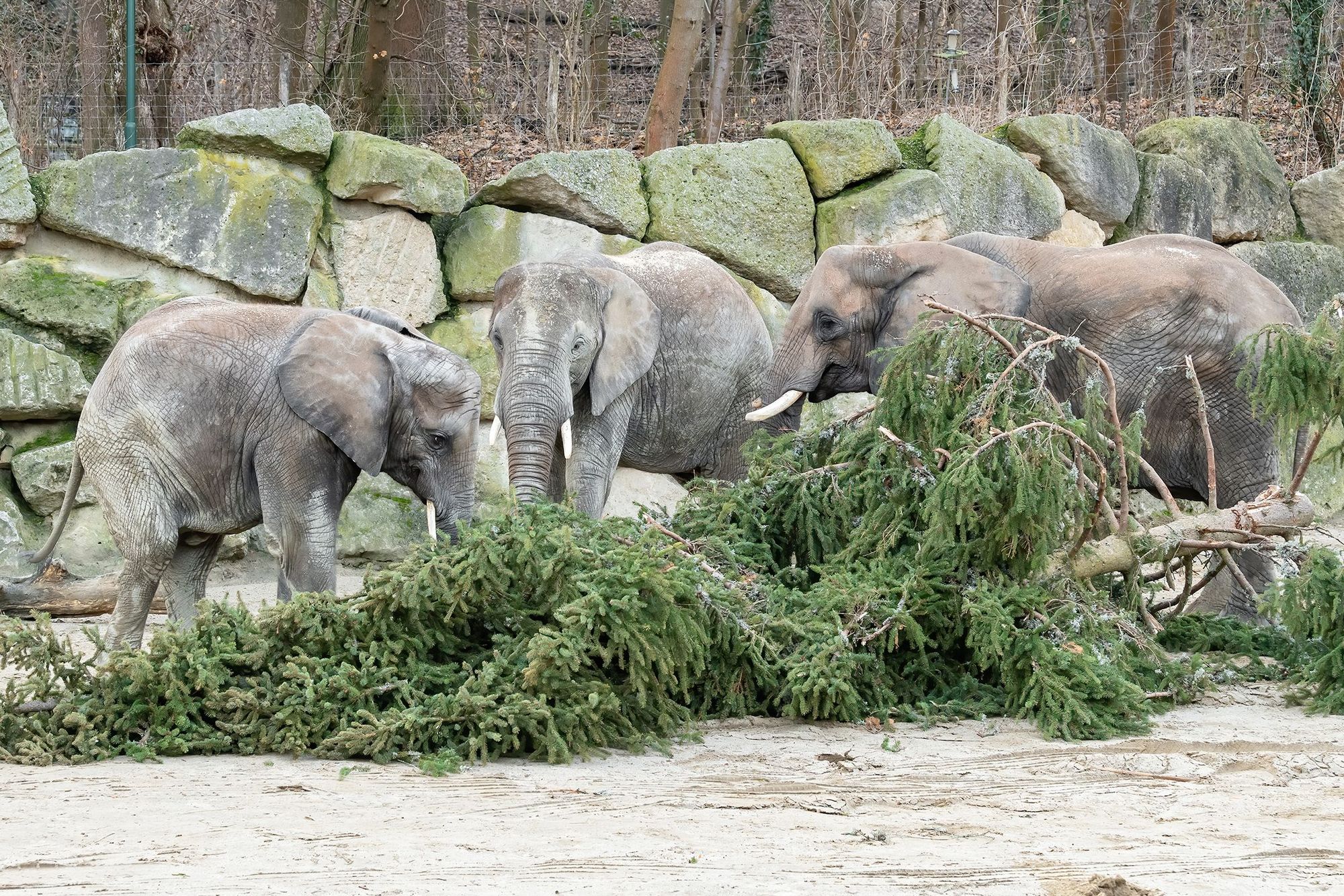 Verfütterung des traditionellen Christbaums an die Elefanten im Tiergarten Schönbrunn (c) Daniel Zupanc