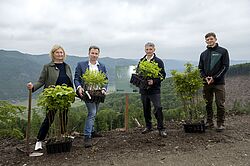 Dabei legen AMS und ÖBf ein besonderes Augenmerk auf artenreiche Mischwälder als aktiven Beitrag zum Klimaschutz. Von Hand wurden rund 10.000 junge Lärchen, Weiß-Tannen, Eichen, Berg-Ahorne und Baum-Haseln, die großen Verwandten des Haselnussstrauches, gepflanzt. Sie alle zeichnen sich durch ein starkes bzw. tiefreichenden Wurzelsystem aus, über das sie auch in trockenen Zeiten gut an Wasser und Nährstoffe herankommen, und das sie fest im Boden verankert. Ergänzt wird die Wald-Vielfalt durch die von Natur aus nachwachsenden Rot-Buchen. „Vielfalt gilt auch in der Natur als beste Risikovorsorge. Artenreiche Wälder haben sich als resilienter gegenüber Umwelteinflüssen erwiesen als einförmige Bestände“, so Schöppl.