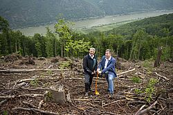 Nachhaltigkeit bedeutet, ins Tun kommen. Daher hat das AMS entschieden, für jeden Betrieb, der persönlich oder online besucht wurde, im Gegenwert eines Mitbringsels in Zusammenarbeit mit den Bundesforsten einen Baum zu pflanzen. Gemeinsam wird eine rund neun Hektar große Fläche im ÖBf-Forstrevier Weißenkirchen in der Wachau wieder aufgeforstet, die von einem heftigen Sturm im Sommer 2023 fast gänzlich entwaldet wurde. „Die Folgen der Klimakrise sind in unseren Wäldern deutlich zu spüren. Daher ist es unsere wichtigste Aufgabe, den Waldumbau hin zu einem artenreichen und klimafitten Mischwald mit aller Kraft und so schnell wie möglich voranzutreiben“, betont ÖBf-Vorstandssprecher Georg Schöppl. „Vielen Dank an das AMS für die Unterstützung dieses Jahrhundertprojekts `Wald der Zukunft´, das unserer Natur und damit auch den Menschen, die hier leben, zugutekommt.“