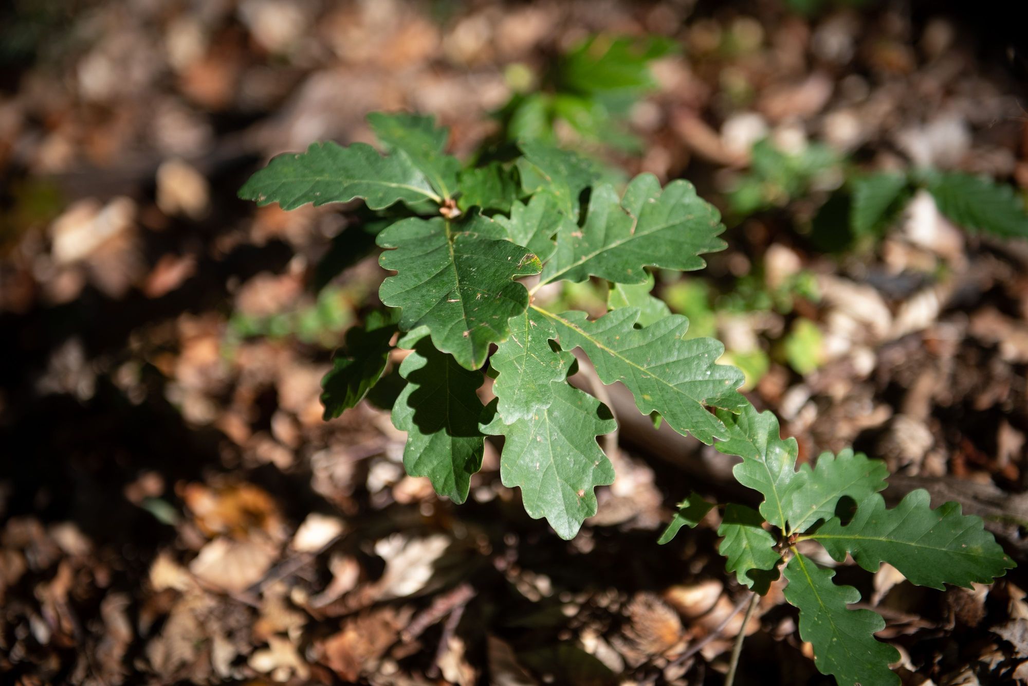 Naturverjüngung im Wald der Zukunft, Eichenkeimlinge im Waldboden