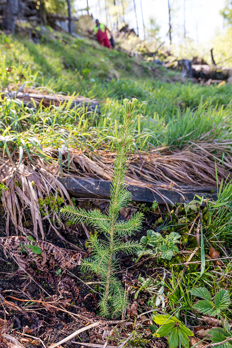 Diese junge Fichte und 10.000 andere Jungpflanzen mehr sollen den Schutzwald künftig verstärken.