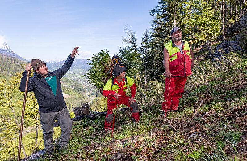 Die rund 45 Hektar große Aufforstungssfläche am Radling liegt auf über 1.000 Meter Seehöhe. Die Pflanzarbeiten erfolgen in äußerst anspruchsvoller Handarbeit. Zu Fuß und mit 10.000 Jungbäumen am Rücken erklimmen die Forstfacharbeiter der Bundesforste die steilen Hänge und pflanzen die Setzlinge einzeln im weitläufigen Gelände aus.
