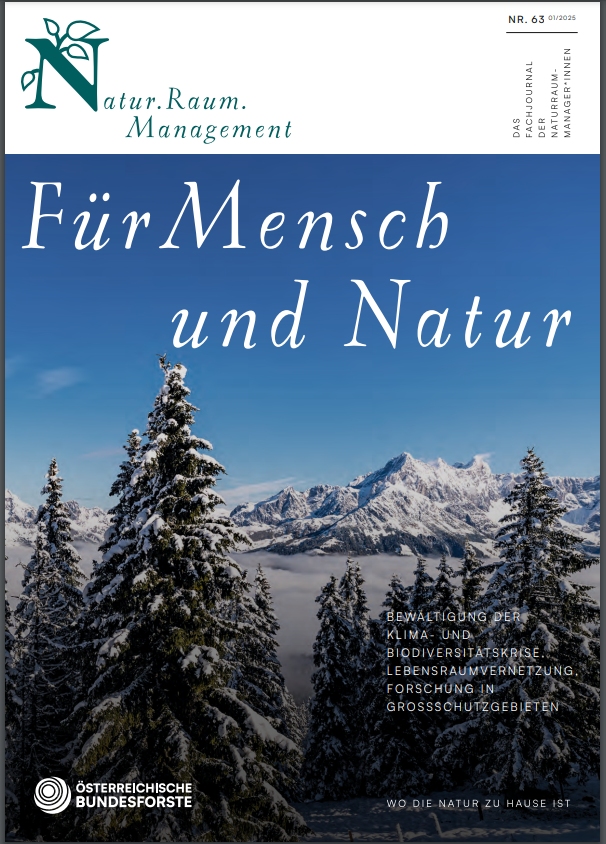 Das Natur.Raum.Management ist das ÖBf-Fachjournal für alle Naturraummanager*innen. Es berichtet 4 mal jährlich über neue Entwicklungen und Projekte sowie zukünftige Schwerpunkte und Trends im Naturraummanagement. Das Fachjournal geht an Stakeholder im Umwelt- und Naturschutzbereich, Vereine, Verbände, Natur- und Umweltschutzorganisationen, Kommunen sowie Vertreter*innen und Entscheidungsträger*innen im öffentlichen wie privaten Bereich.