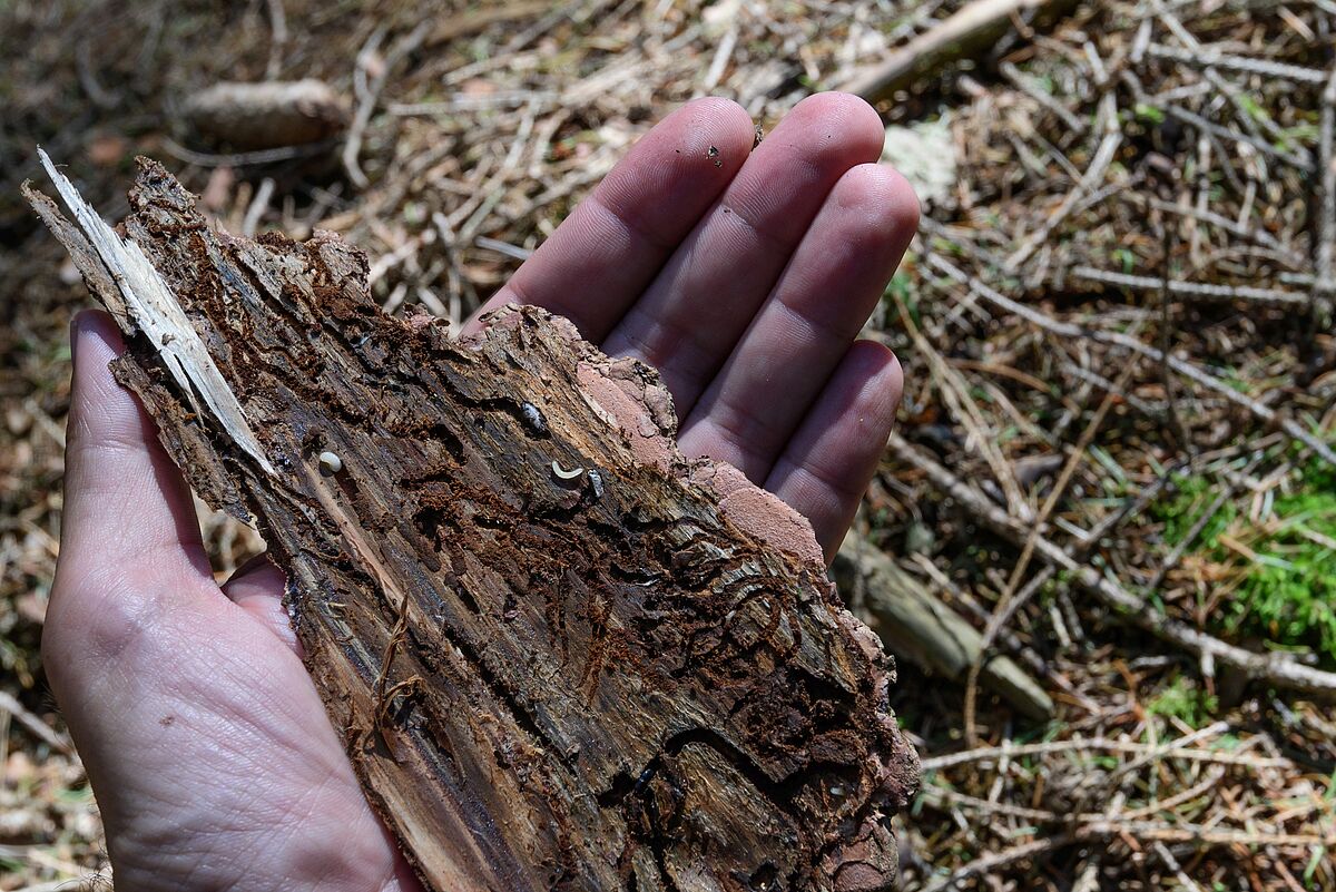 Borkenkäferlarven und ihre Larvengänge entdecken