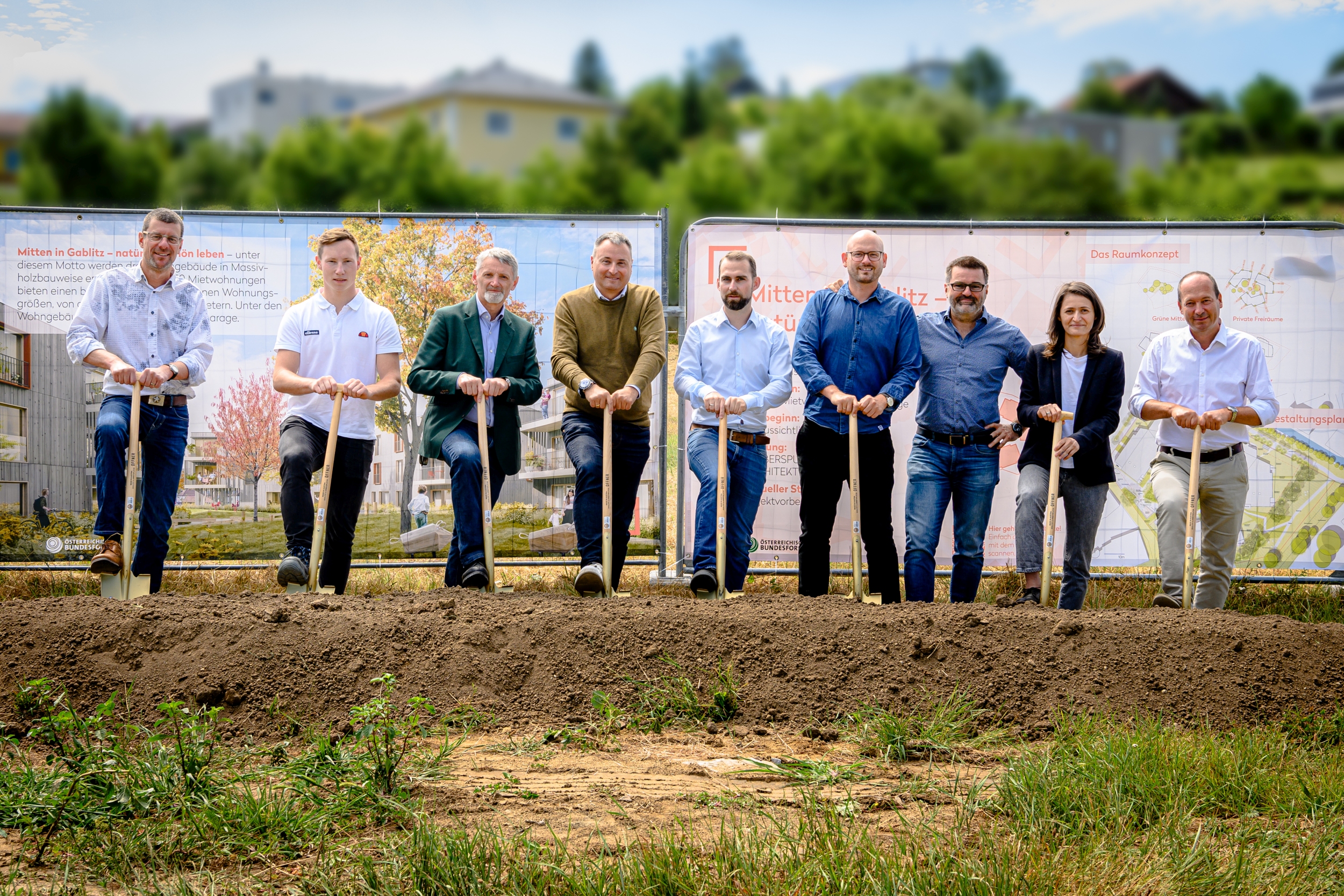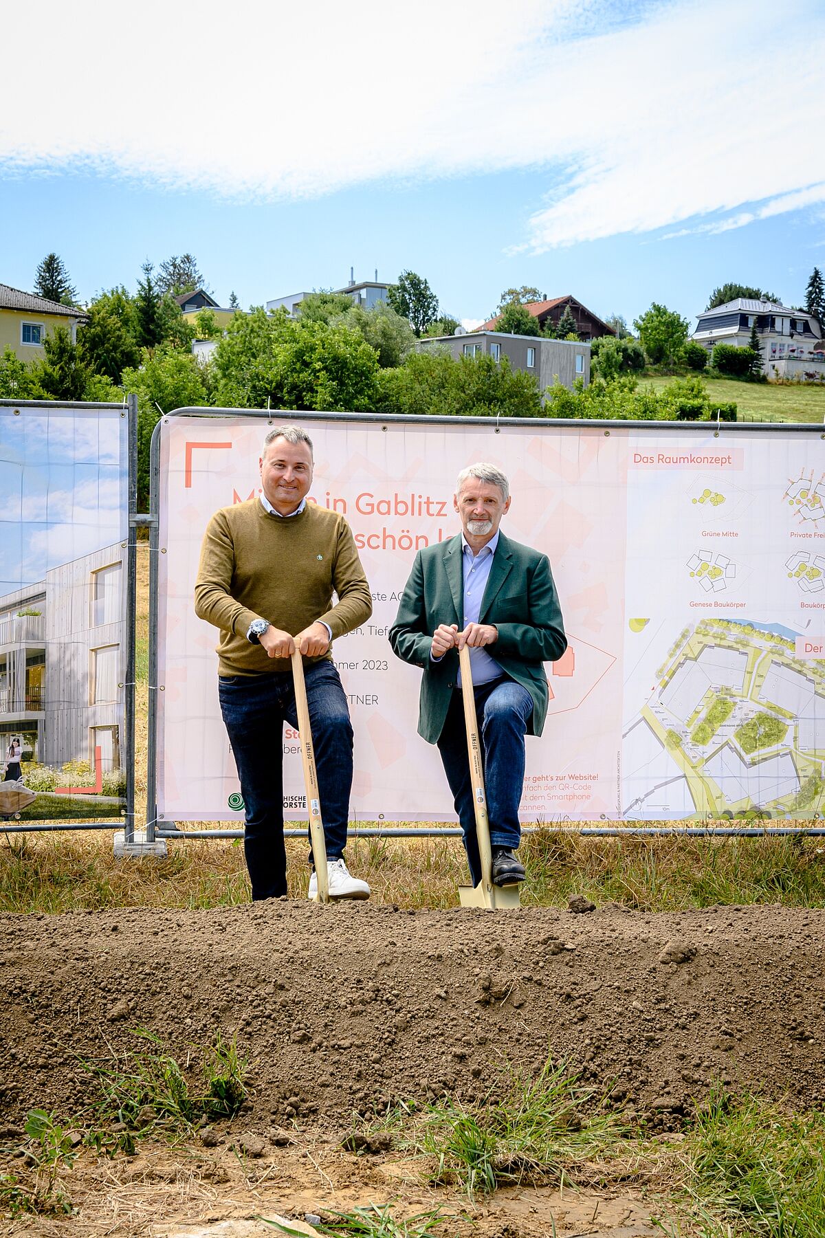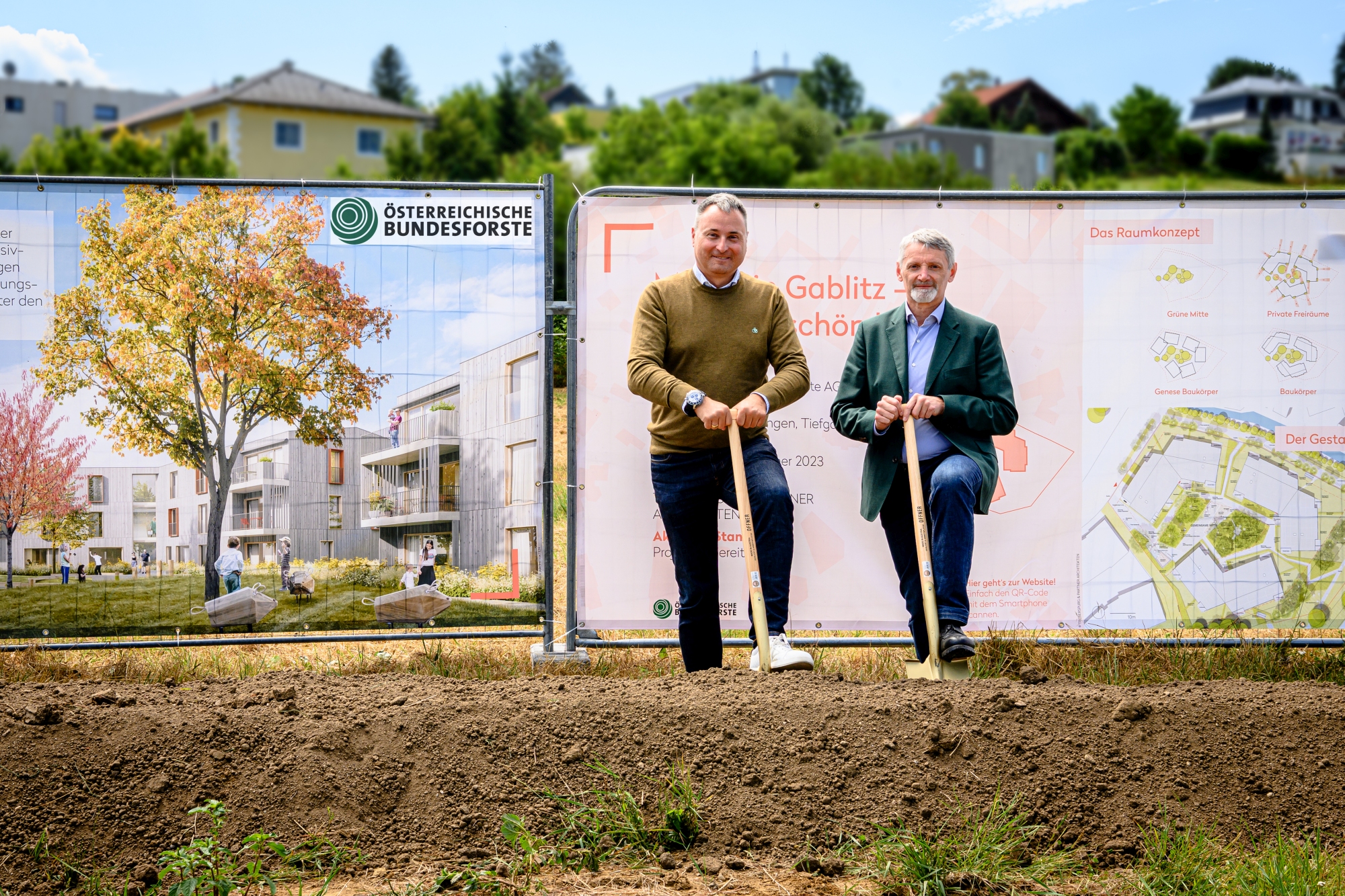 Bgm. Michael Cech und ÖBf-Vorstand Georg Schöppl beim Spatenstich für das Projekt "Mitten in Gablitz"