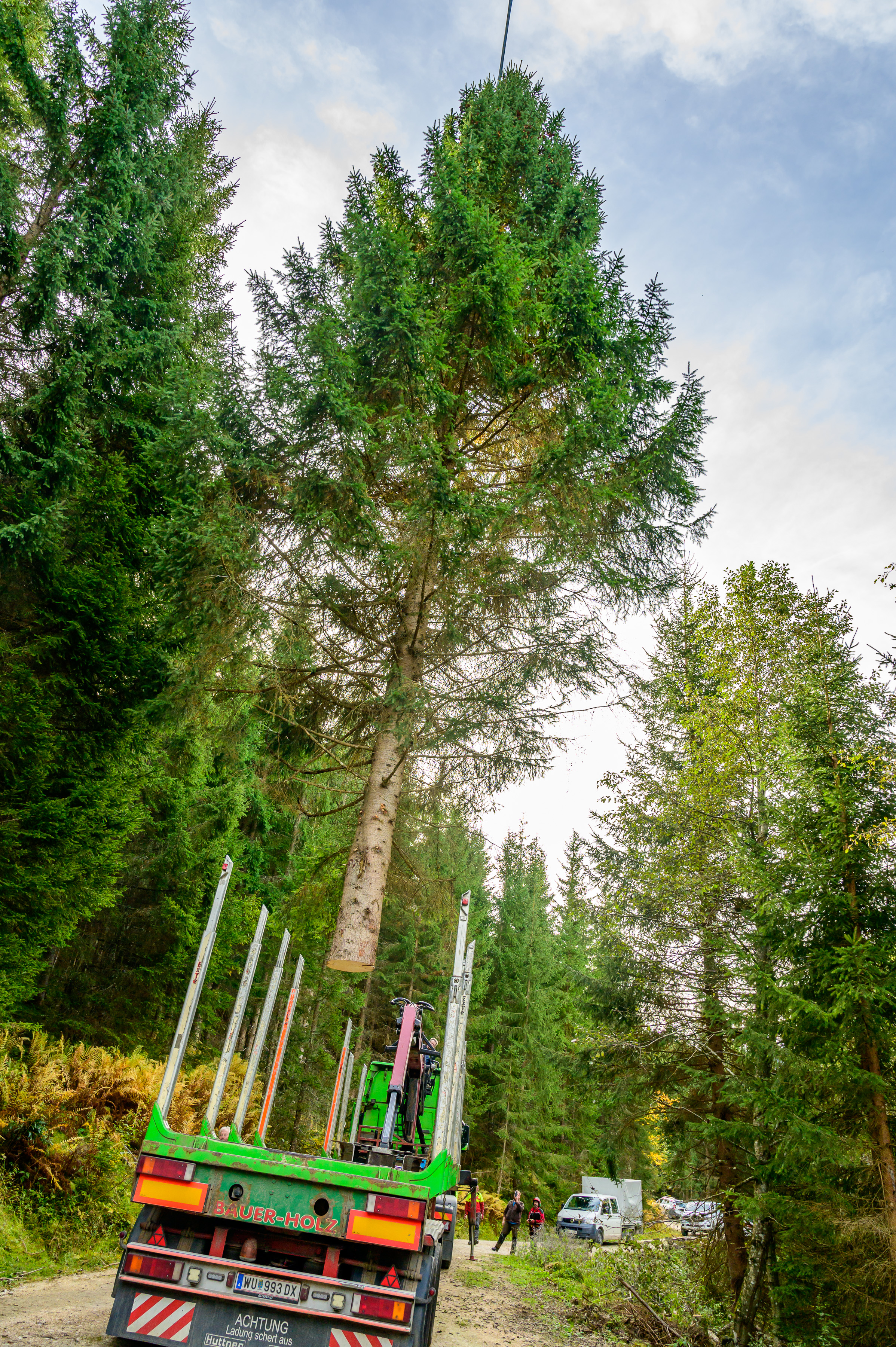 Vorbereitungen zur Ernte des Christbaums für Schönbrunn