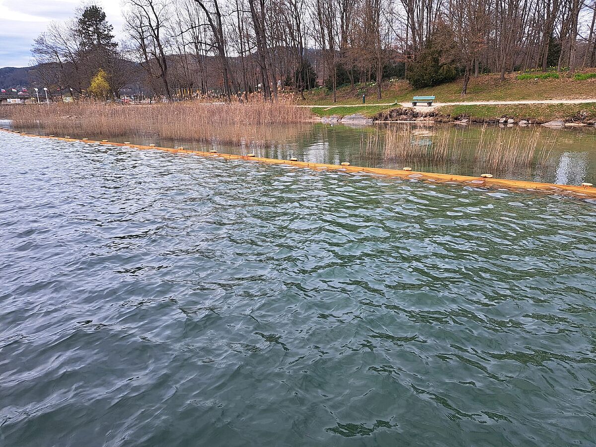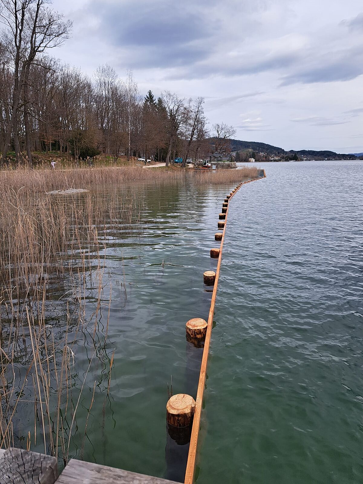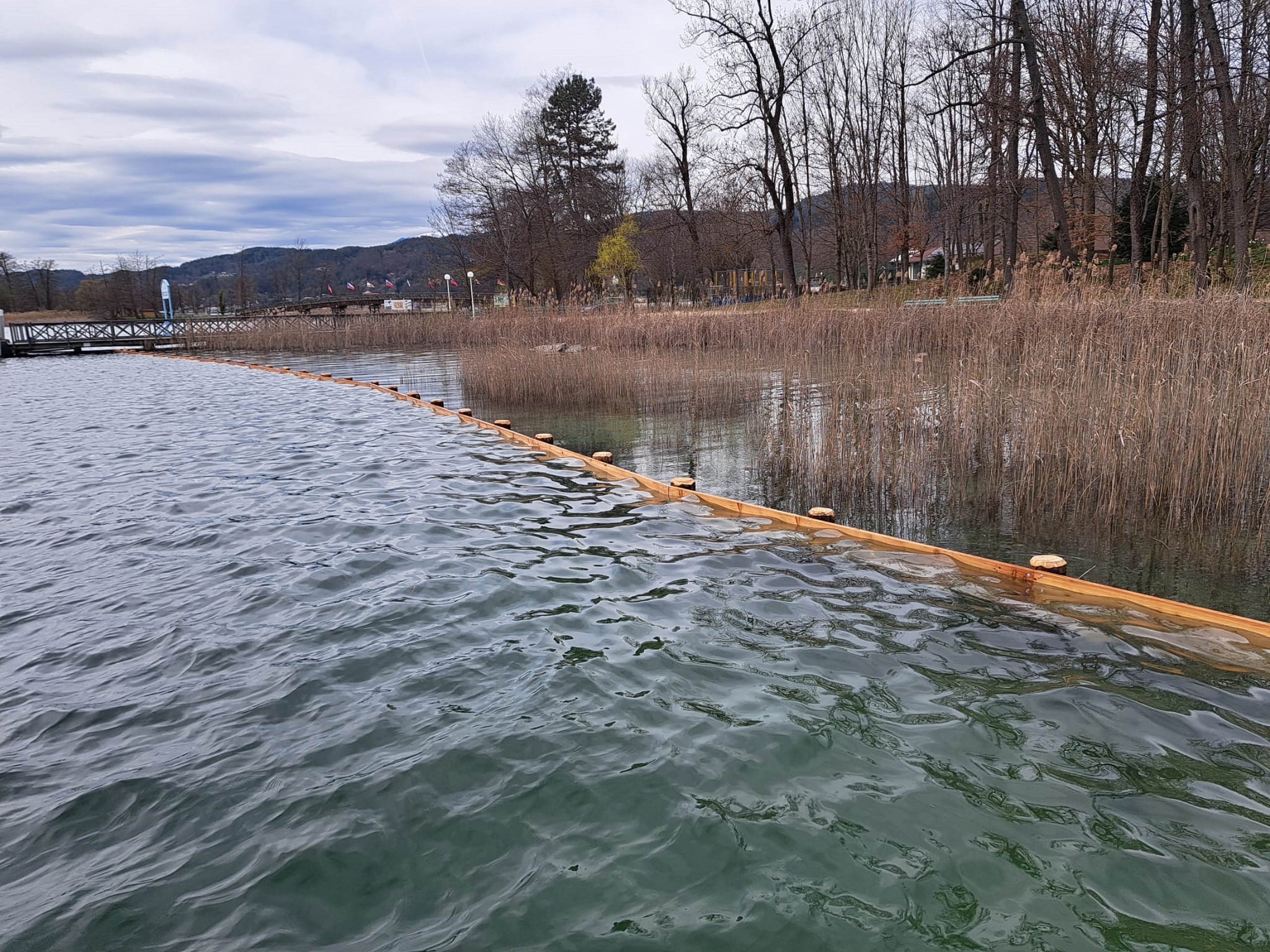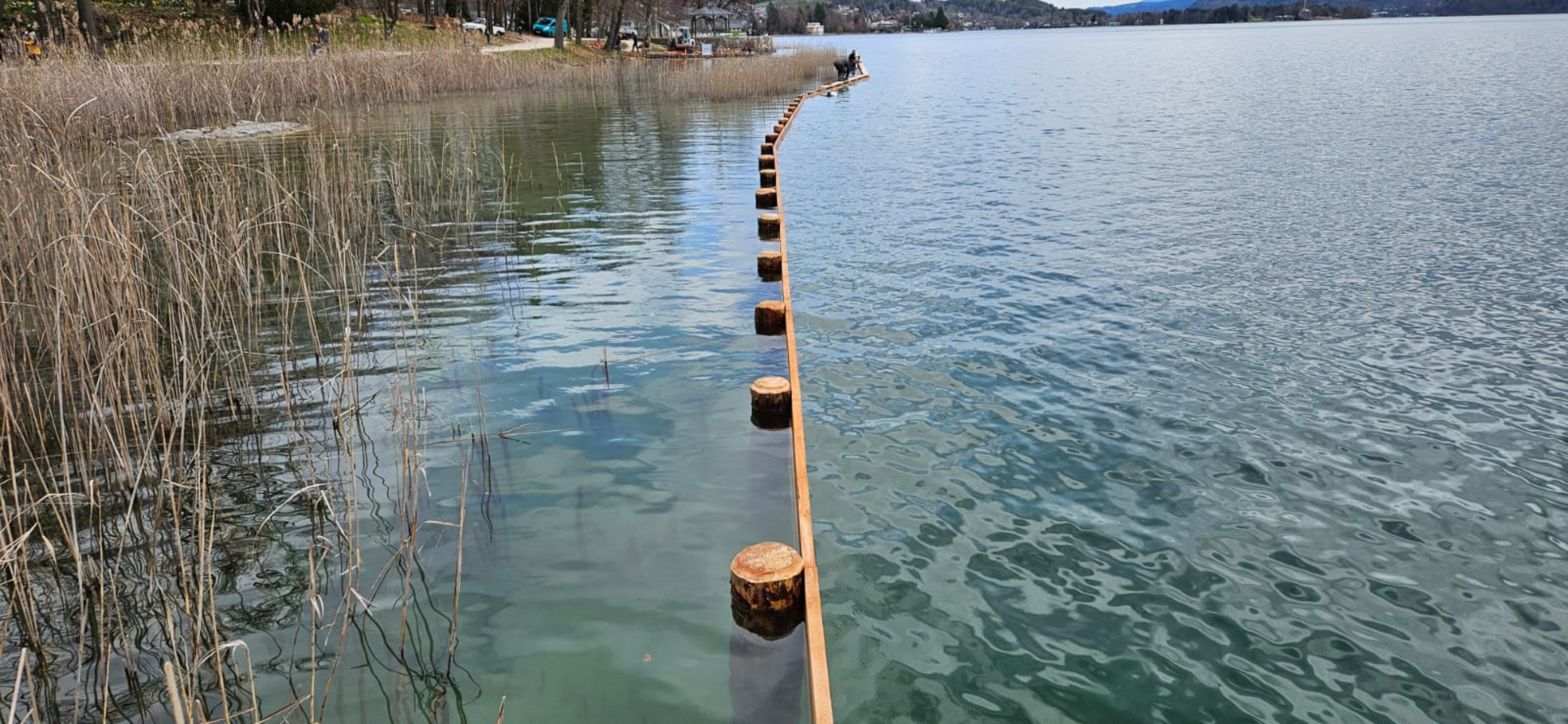 Wörthersee: Errichtung des neuen Schilfschutzzauns beim Peter-Alexander-Steg vor der Pörtschacher Halbinsel