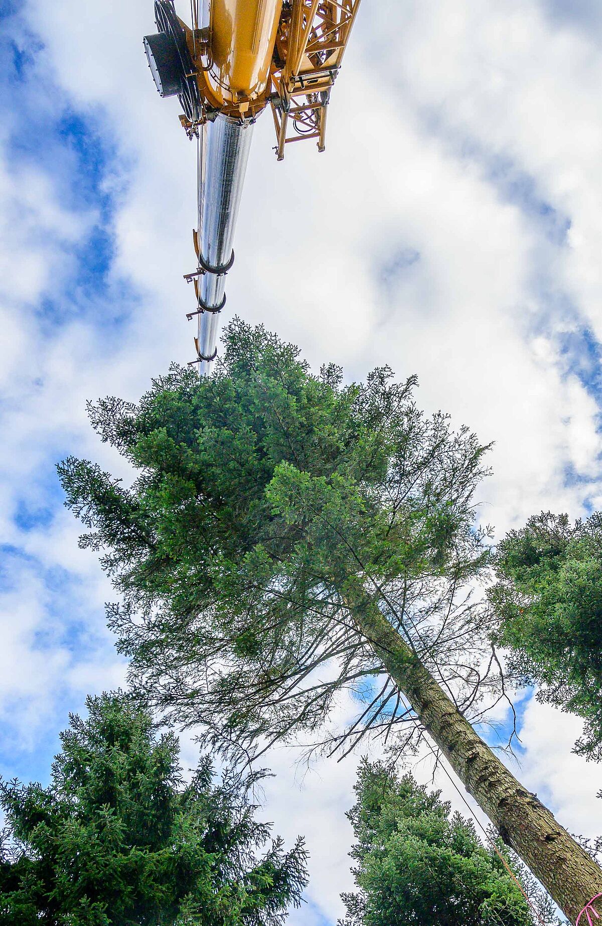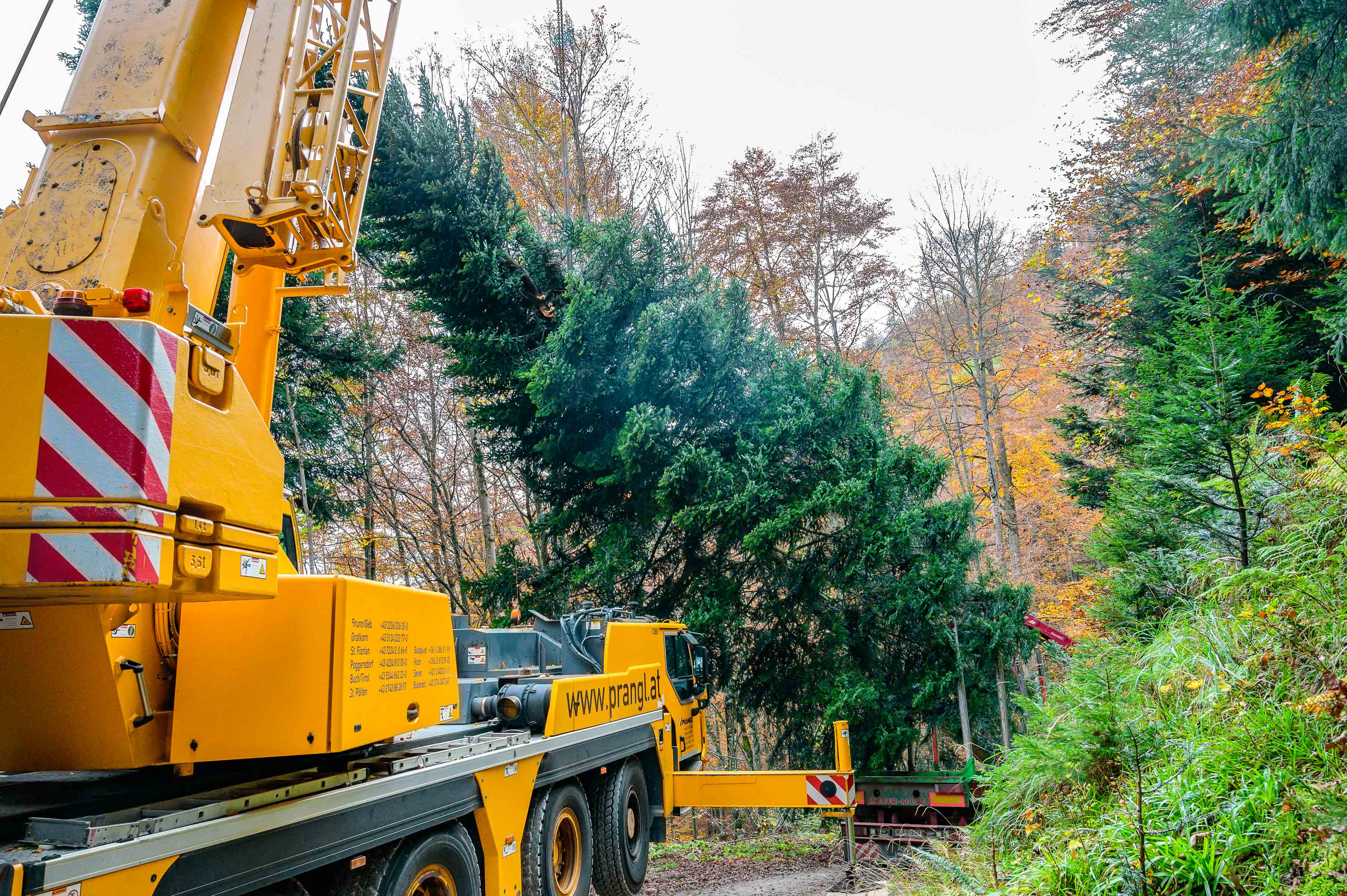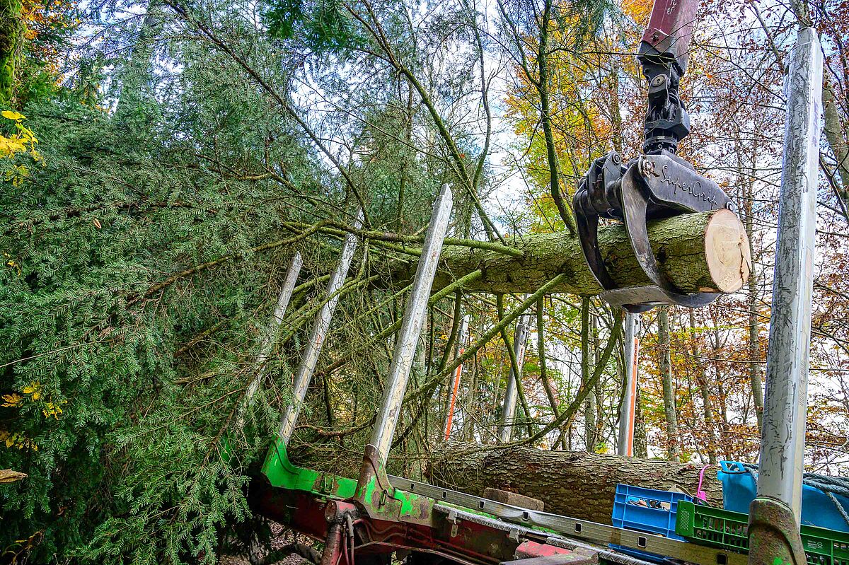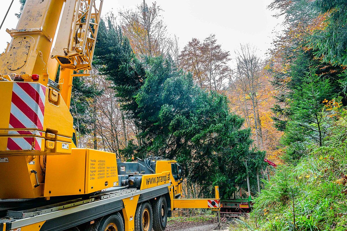 Christbaumernte mittels Kran im ÖBf-Forstrevier Traunstein im Forstbetrieb Traun-Innviertel (OÖ)