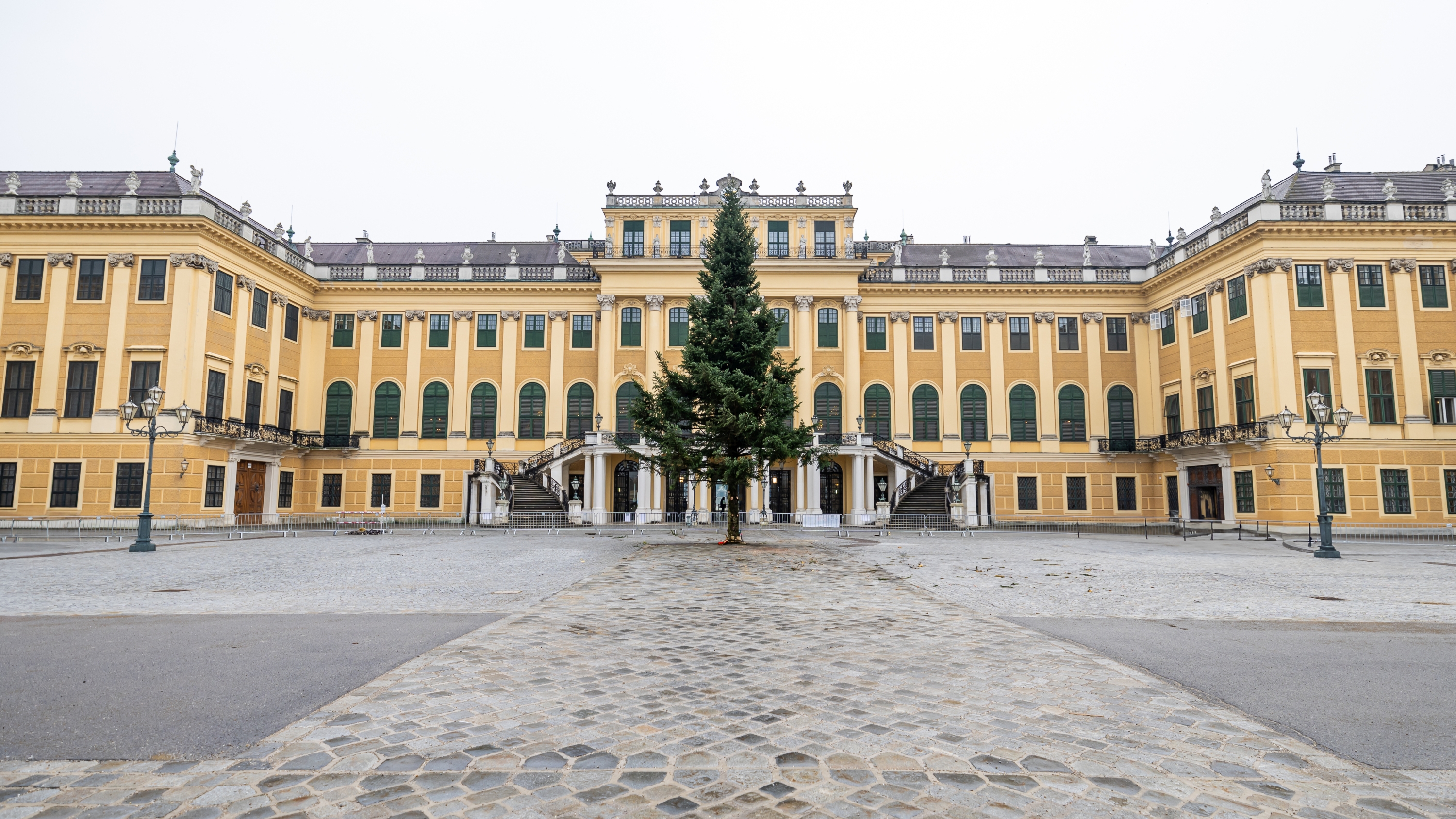 Baumaufstellen im Ehrenhof vor dem Schloss Schönbrunn