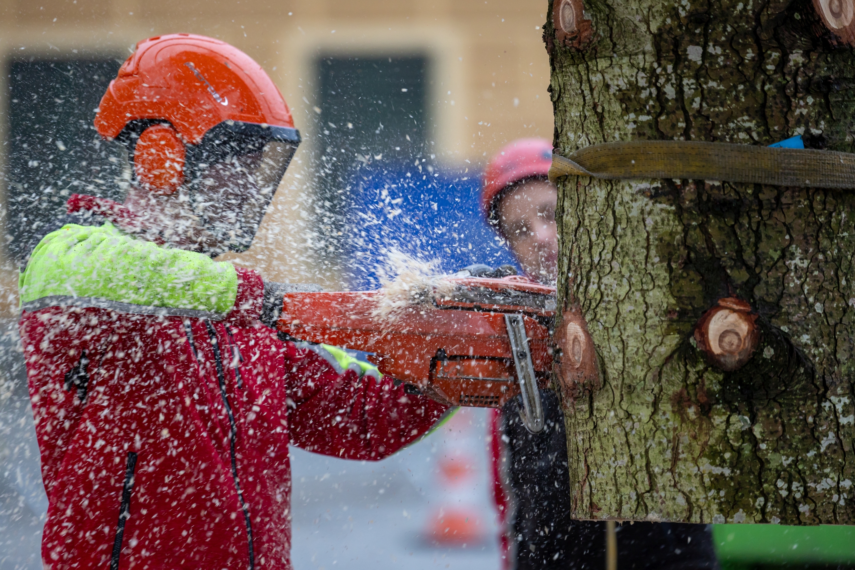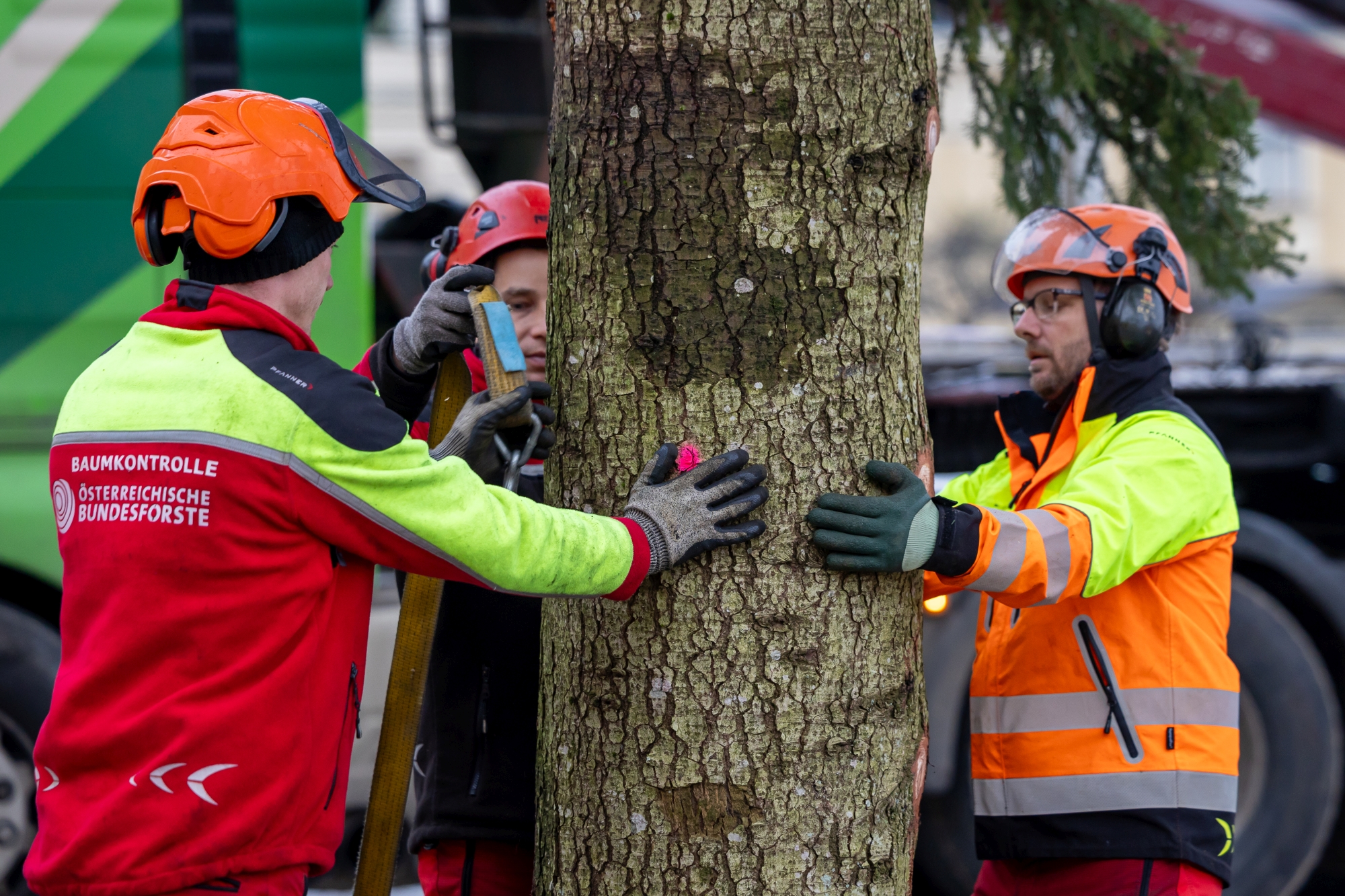 ÖBf-Experten beim Baumaufstellen im Ehrenhof vor dem Schloss Schönbrunn