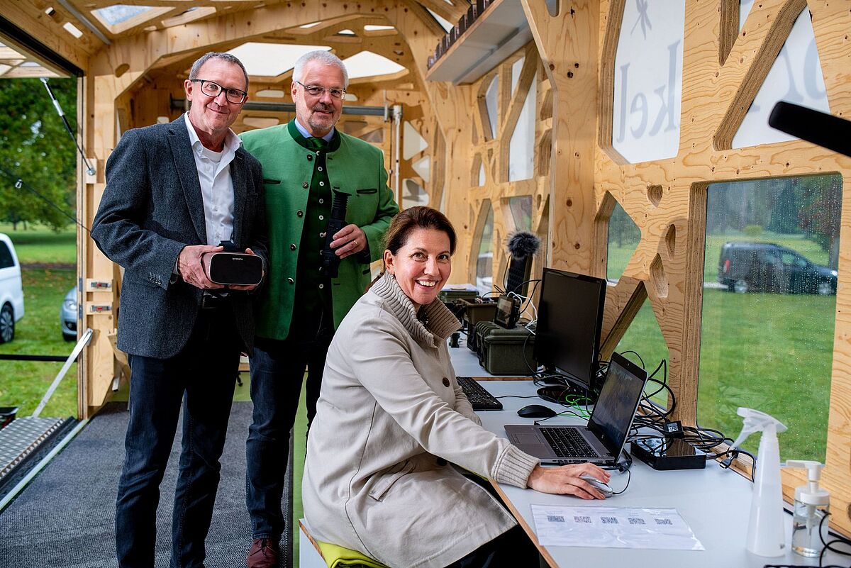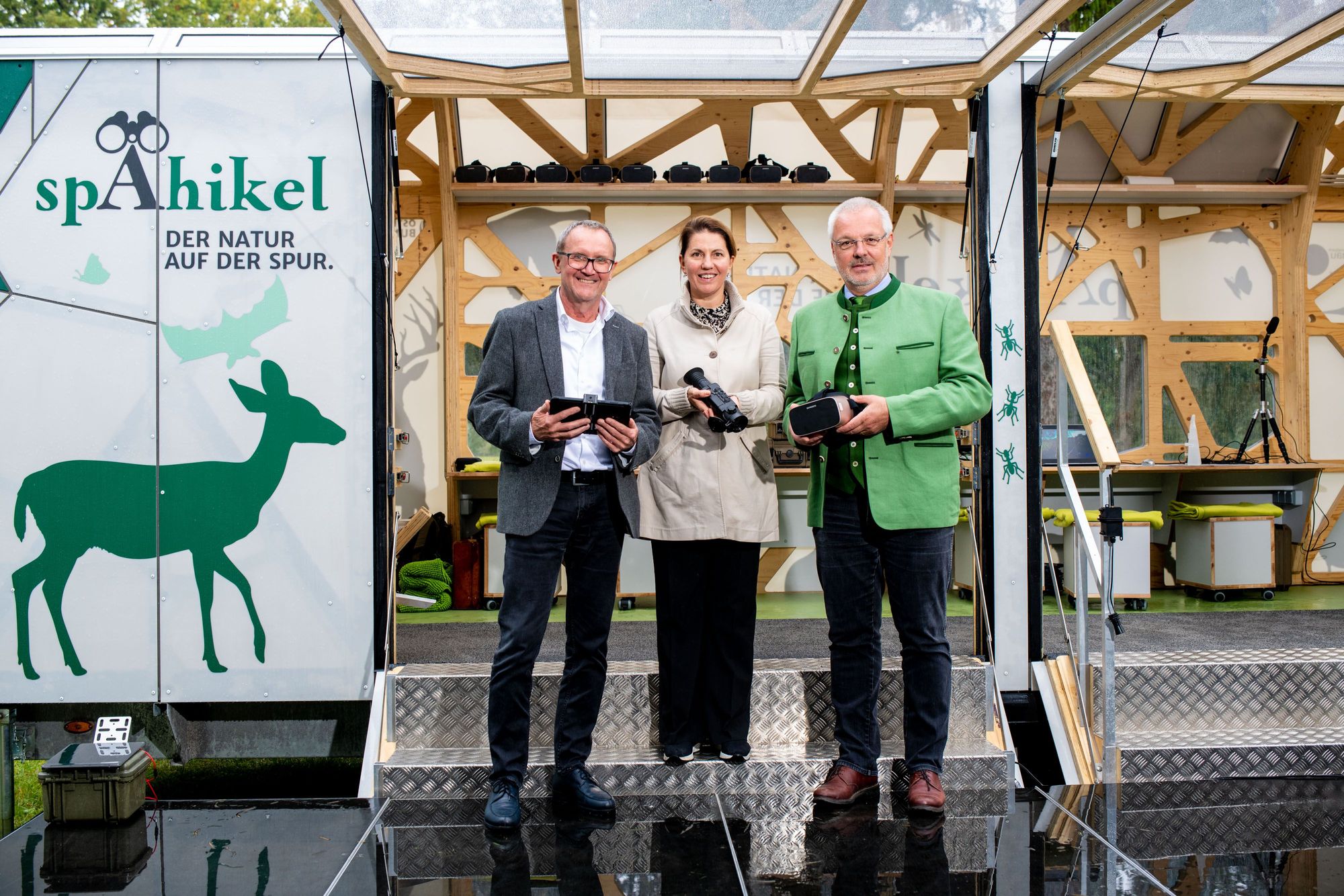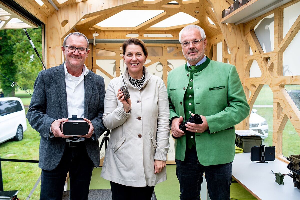 Rudolf Freidhager, ÖBf-Vorstand, Edith Klauser, Direktorin Nationalpark Donau-Auen, und Johannes Wimmer, Leiter ÖBf-Nationalparkbetrieb Donau-Auen, bei der Präsentation des Spähikels