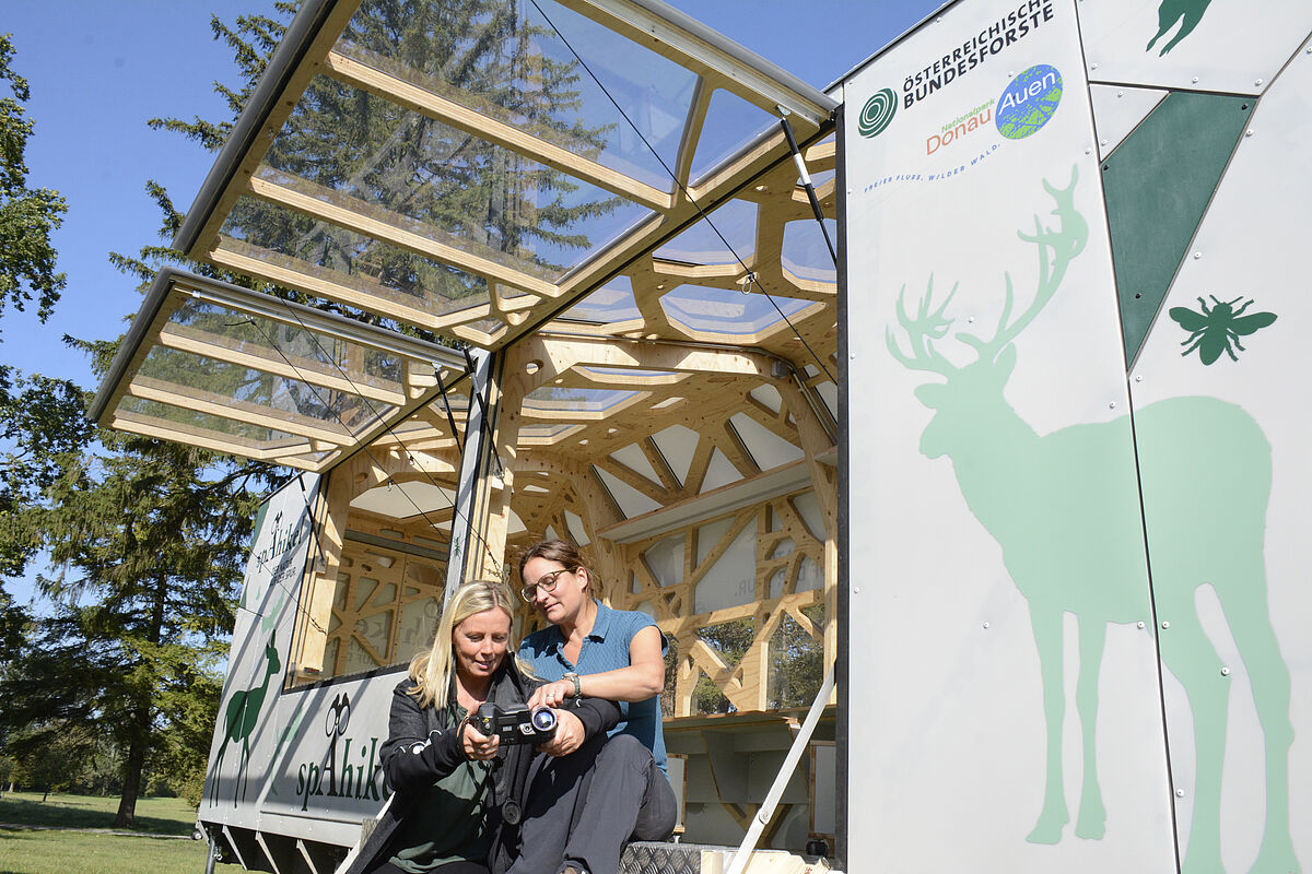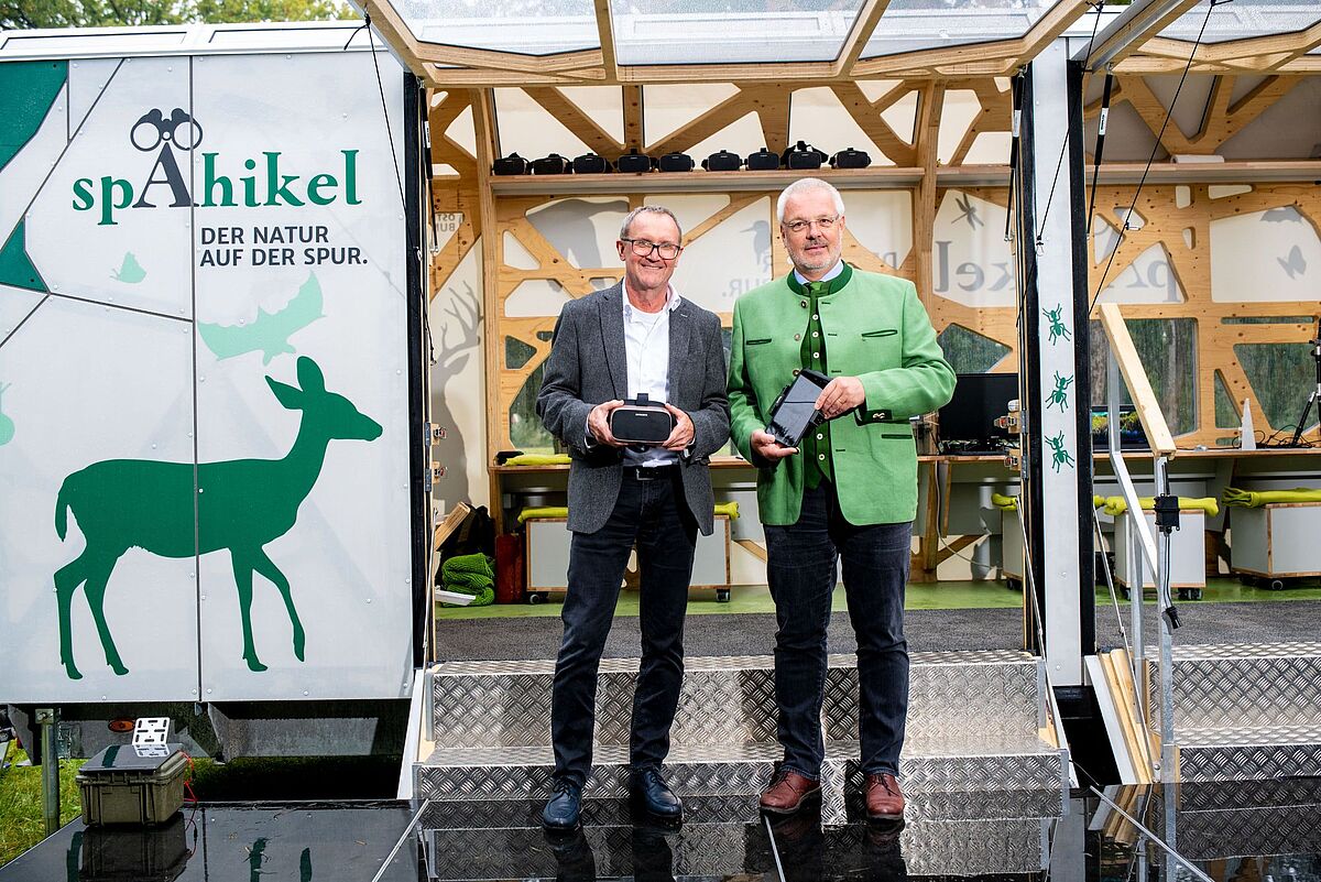 Rudolf Freidhager, ÖBf-Vorstand, und Johannes Wimmer, Leiter ÖBf-Nationalparkbetrieb Donau-Auen, bei der Präsentation des Spähikels