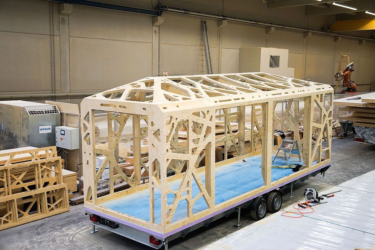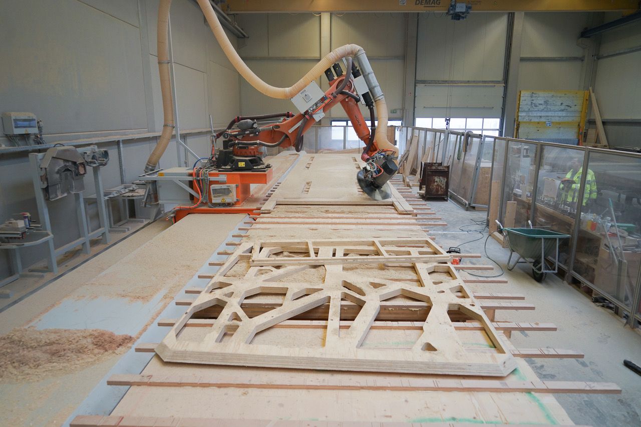 CNC-Roboter im Einsatz für die Holzkonstruktion